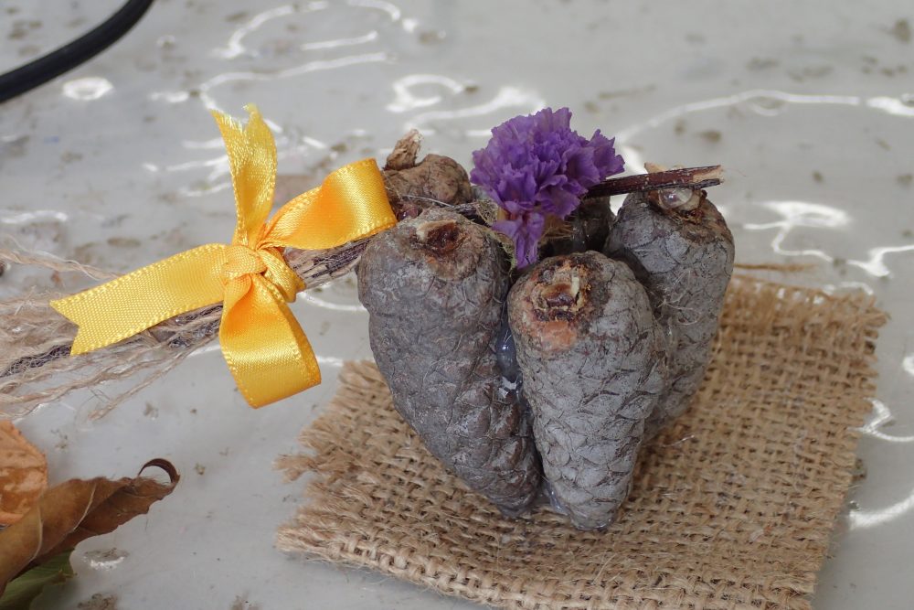見本のハロウィンのカボチャを参考に、自分の好きな木の実で作ってみたり。