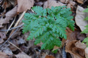 公園の景色が茶色味を帯びてくると、今まで目立たなかった植物が見えてきます。 これは、フユノハナワラビというシダ植物です。 常緑の植物なので、この姿のまま冬を越して春を迎えます。 フユノハナワラビ以外にも、フッキソウやナニワズなども、小さいながらも青々とした 葉をつけていますよ。