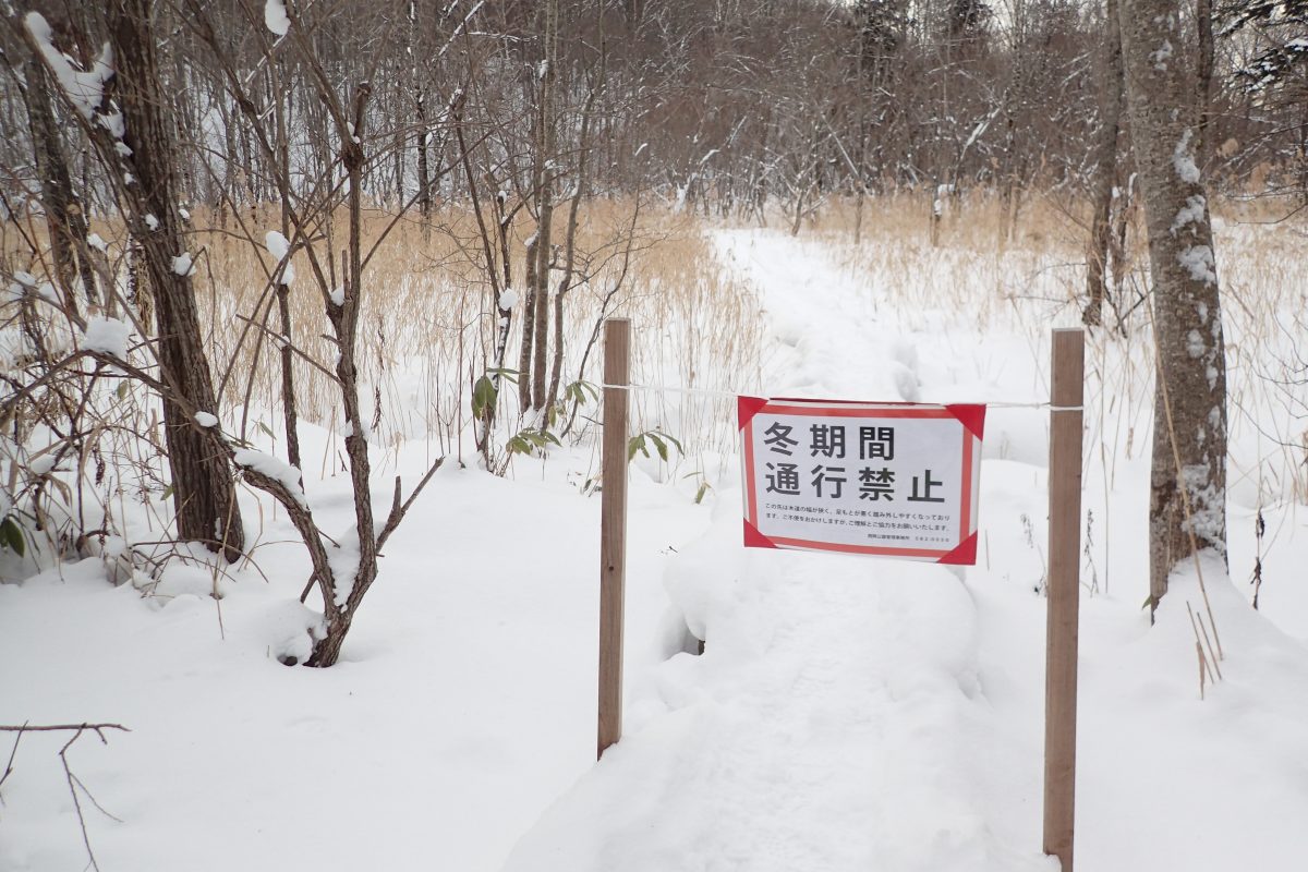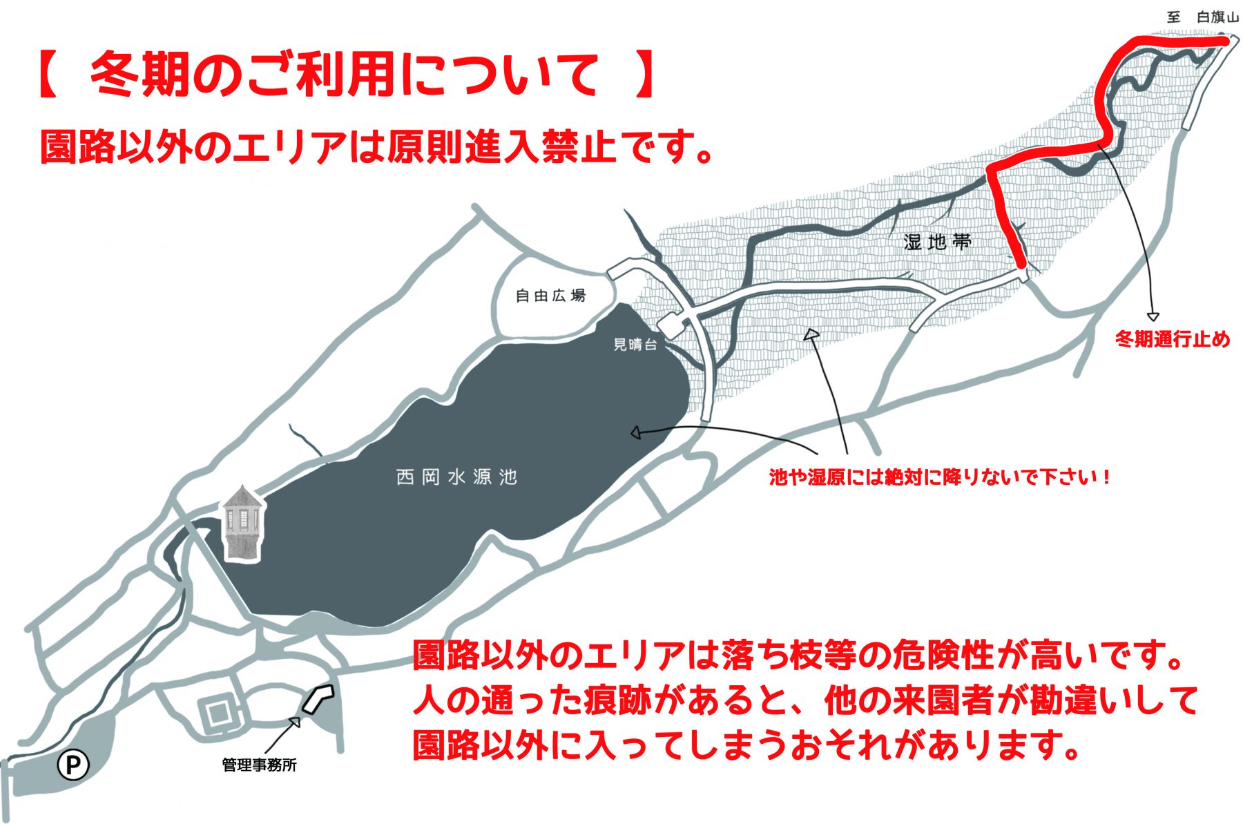 冬の西岡公園は積雪により危険性のある場所がわかりづらくなっております。