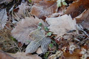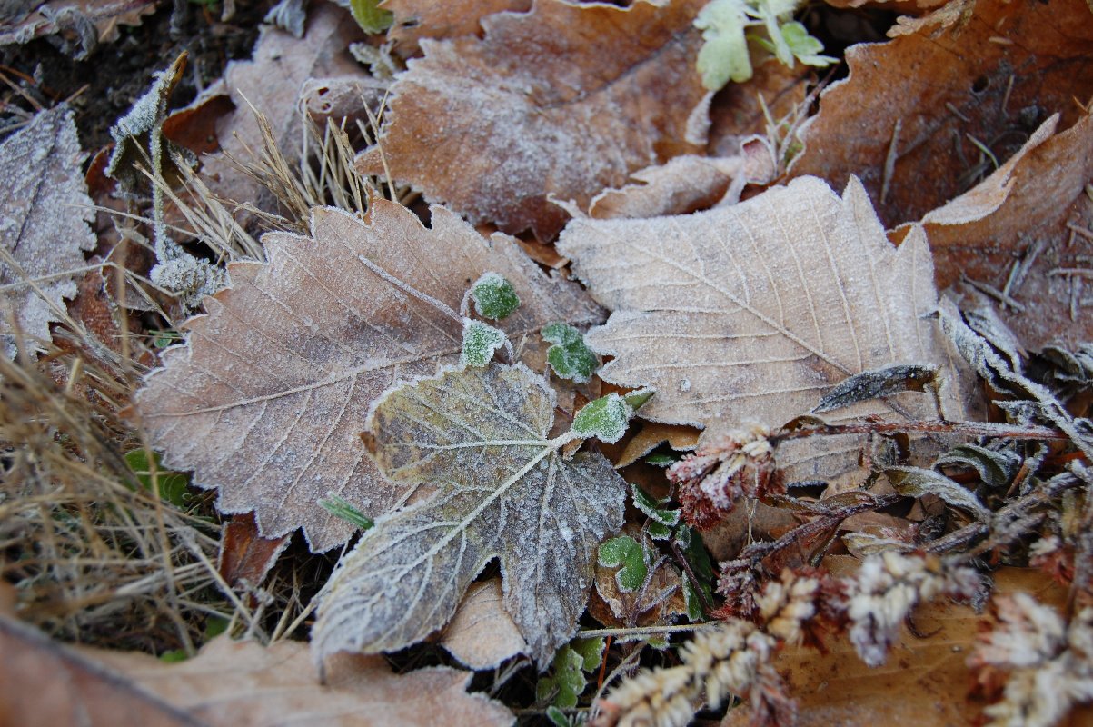 今朝出勤すると、花壇も広場も、うっすらと霜が降りていました。 カラマツの黄葉はまだ楽しめますが、他の木々の葉はすっかり落ち、 もう冬はすぐそこに来ているようです。