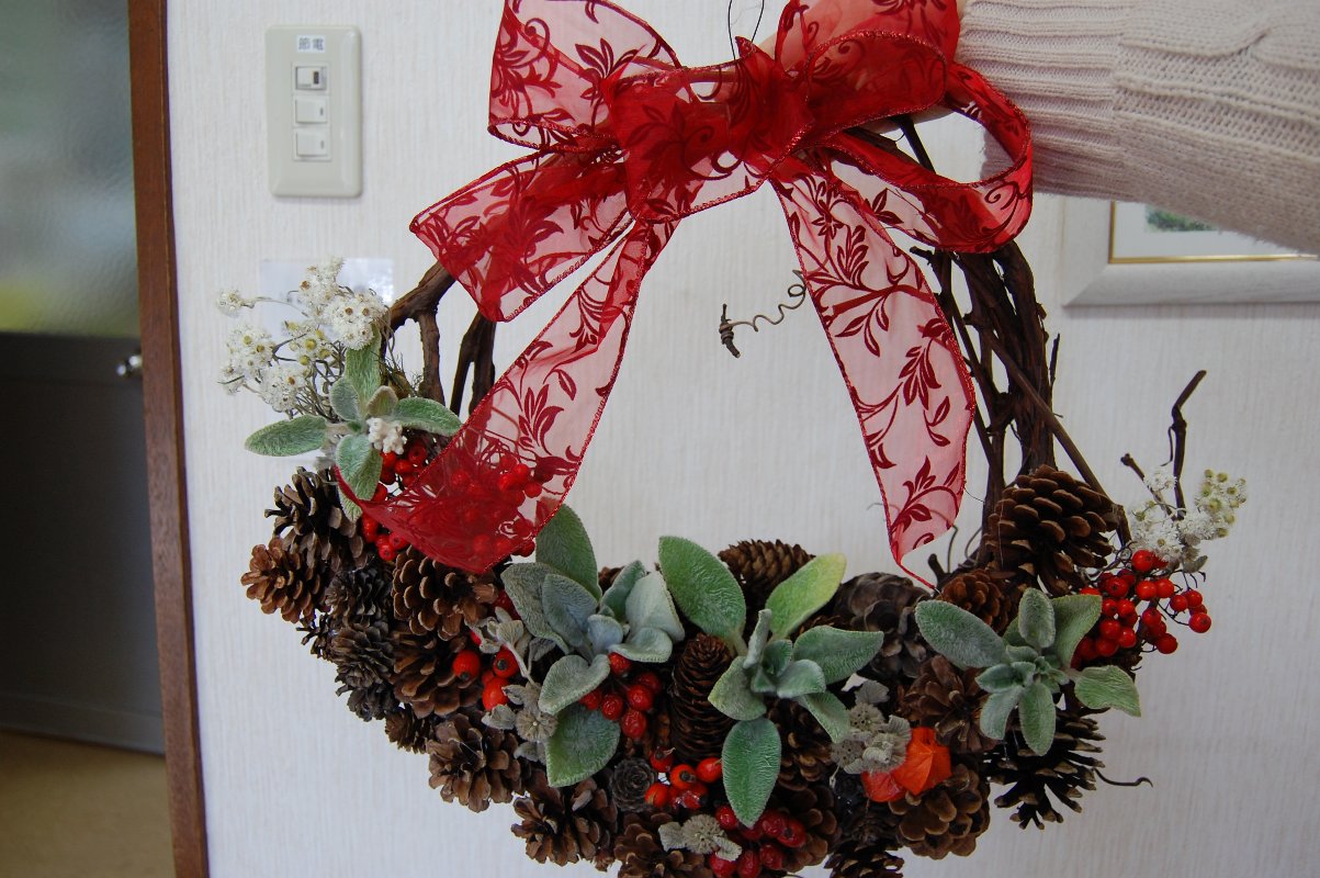 10日は、ちょうどNHKの取材が来ていたので、完成したリースを持って、