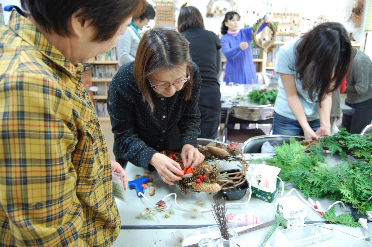 昨日と今日は、毎年恒例のクリスマスリースづくりを行いました。