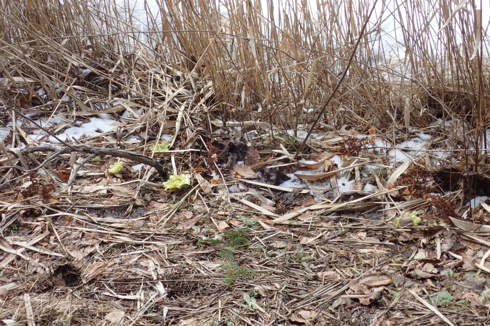 取水塔横の築堤では、フキノトウが開花しています。顔を覗かせてからすでに1週間ほど経過したでしょうか。毎年日当たりのよい築堤で一番最初に見ることが出来ます。