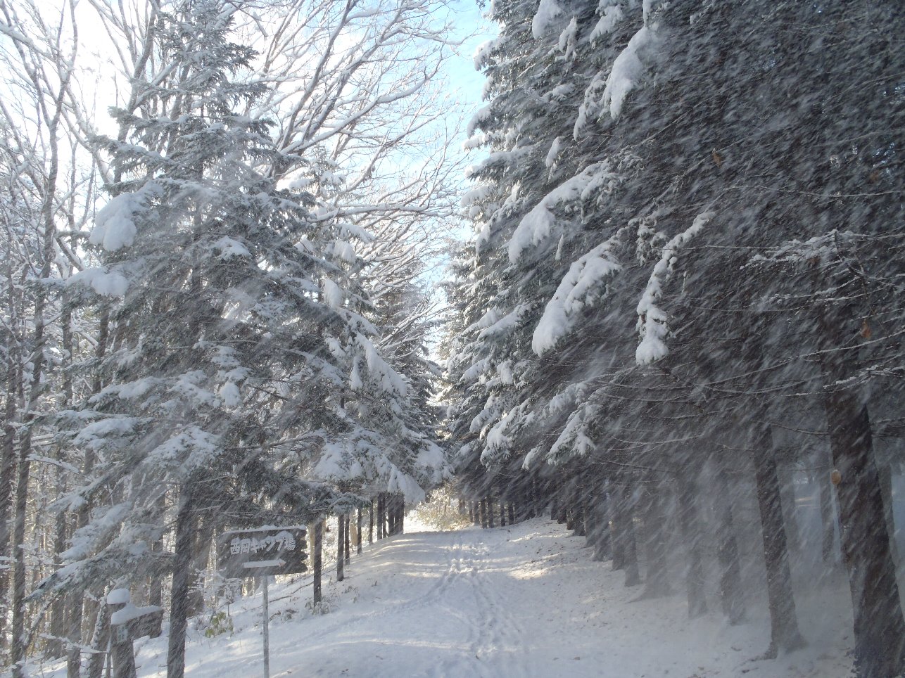 ヨーロッパトウヒの並木も雪で覆われており、雪のトンネルが出来ていました。