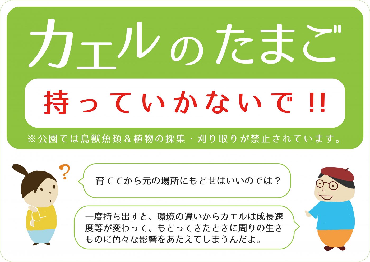 今ある環境でふ化・繁殖できるように、卵を(もちろん大人のカエルも)持ち帰らないようご協力ください。