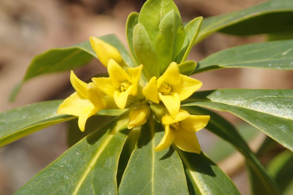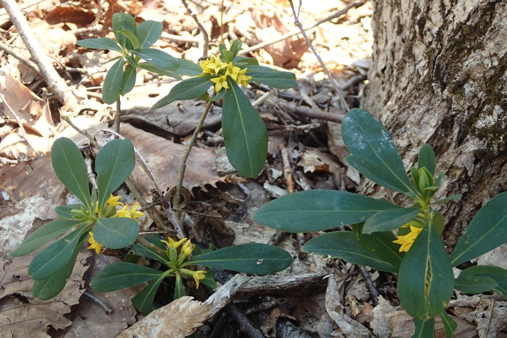西側散策路ではナニワズが開花。まだまだ緑や彩りの少ない散策路で鮮やかな黄色の花は大変目立ちます。