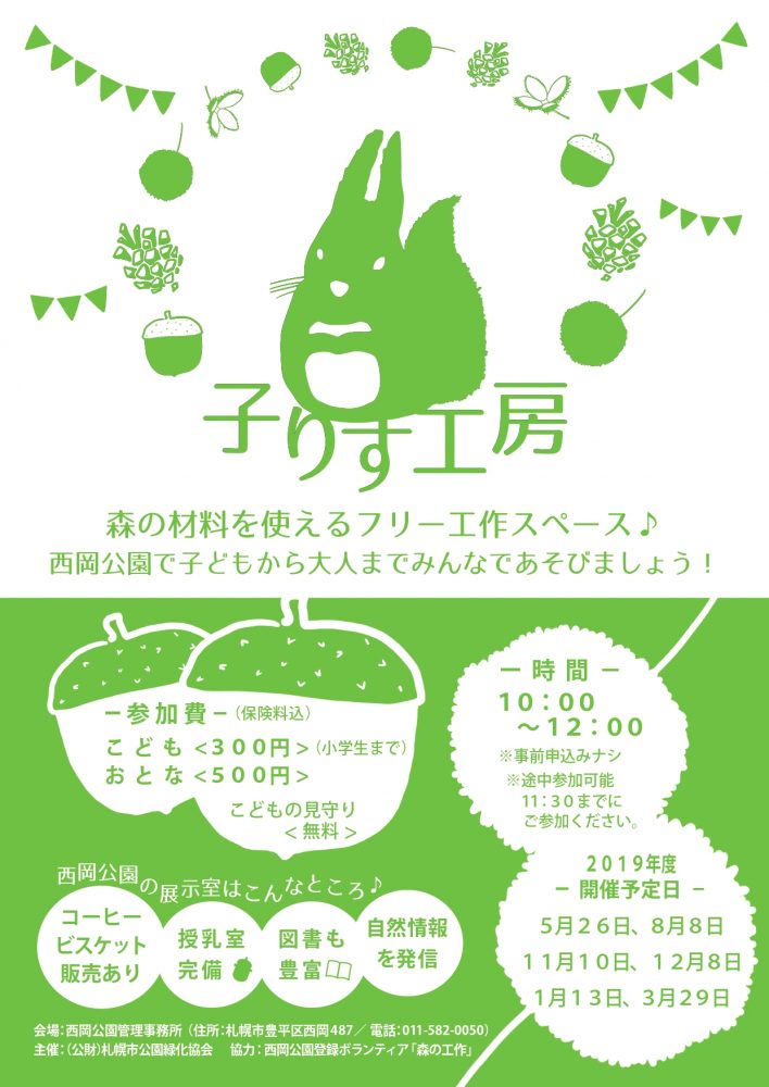 子りす工房は、西岡公園のボランティア団体「森の工作」のスタッフがサポートしてくれる木工クラフト教室です。