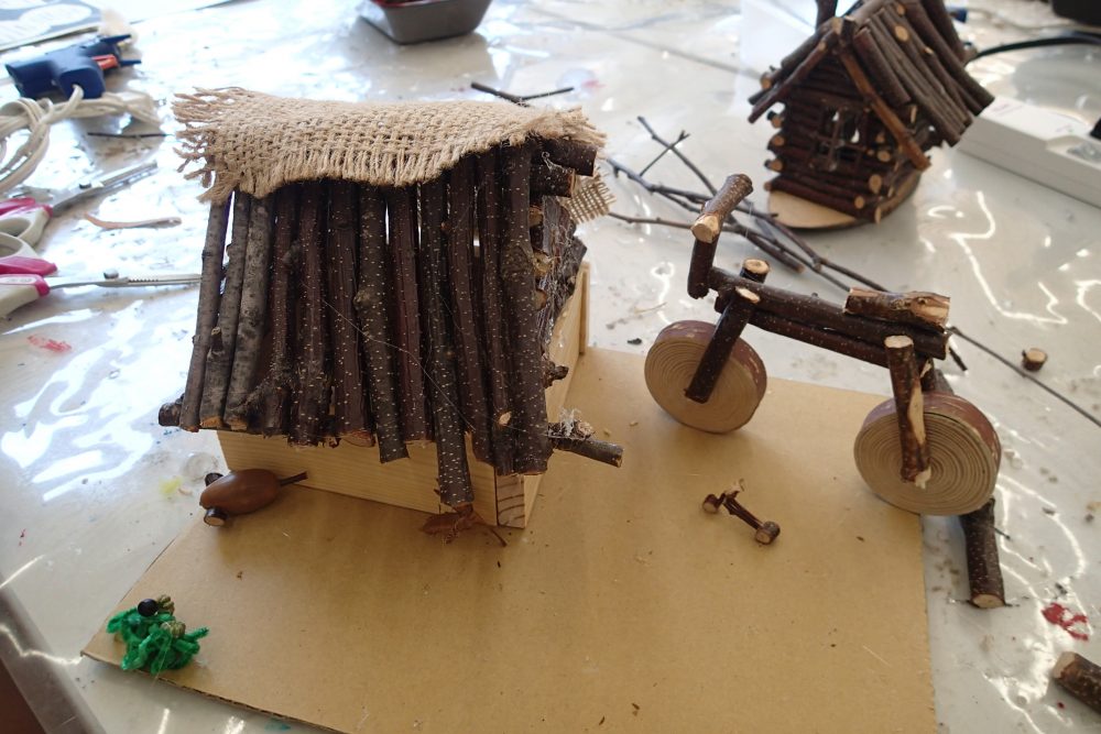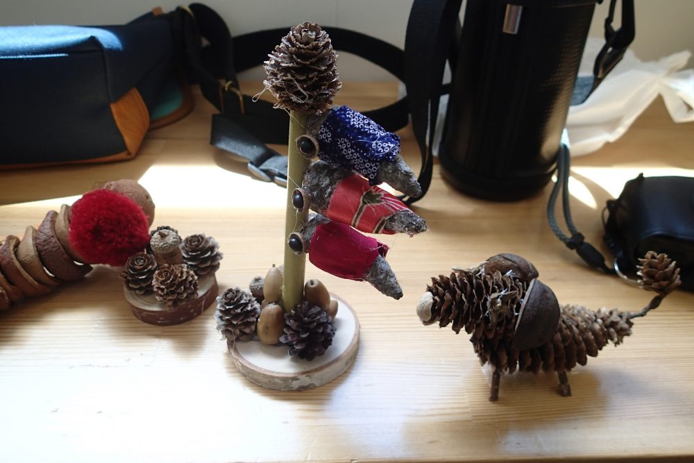 テーマを決めずに、事務所内にある様々な見本と同じものを作っても良し!自分の作りたいものを作っても良し!豊富な森の材料を使って、自由に工作を楽しむ時間です。