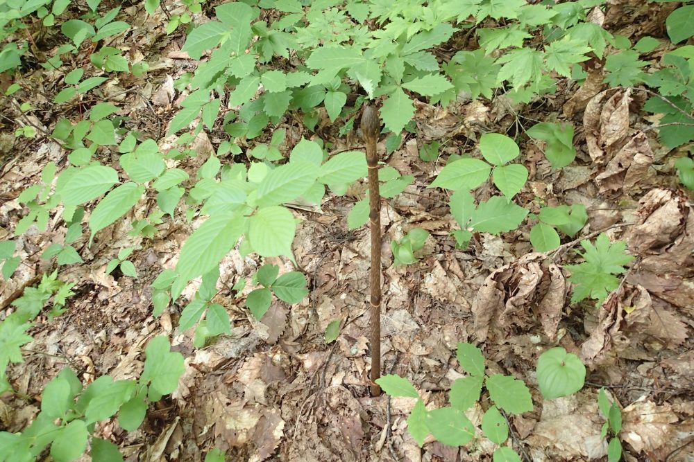 林床にはまるでアスパラガスのような姿をしたオニノヤガラの蕾もありました。この出で立ちからどんな花が咲くのか想像して、次回探してみるのもいいですね。