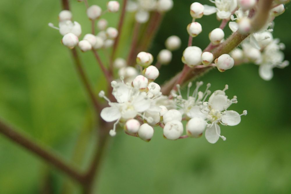 小さな花が集まって咲いているといえば、オニシモツケも開花しました。