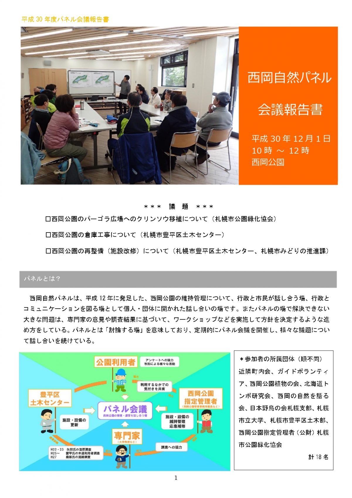 これまでも毎年定期的にパネル会議を開催し、西岡公園の自然の保全や公園の管理に関する様々な議題を検討してきました。