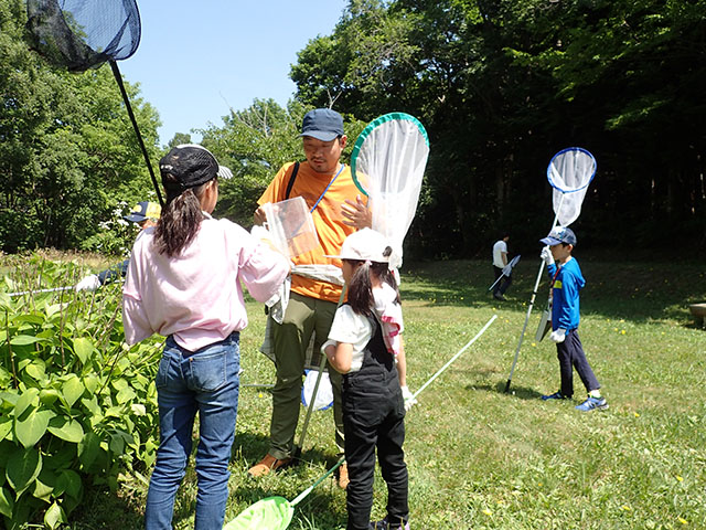 8月4日にいきものわくわくビギナーズ「昆虫たんけん隊」を開催しました。 福田先生と長谷川先生といっしょに、西岡公園のパーゴラ広場での昆虫採集と標本化を体験してみました。