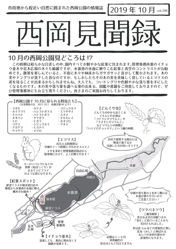 今月の表面には、秋が深まる園内で散策中に見かける動植物を紹介しています。園内を散策する際に、参考にしていただければと思います。