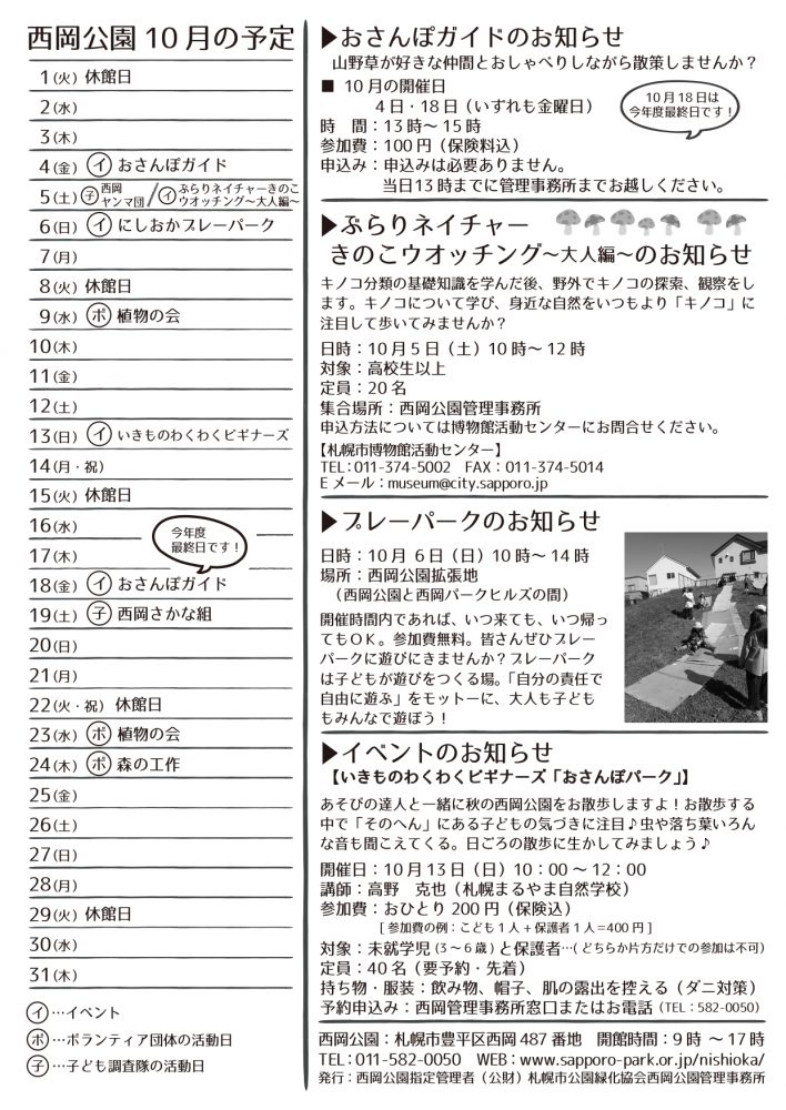 裏面では、10月のイベントとして今年度最終となるおさんぽガイドやイベント開催をお伝えしています。