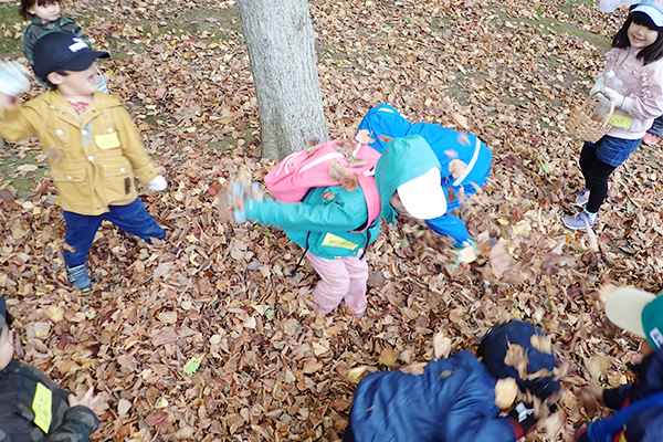 カッサカサの落ち葉に埋まったり、