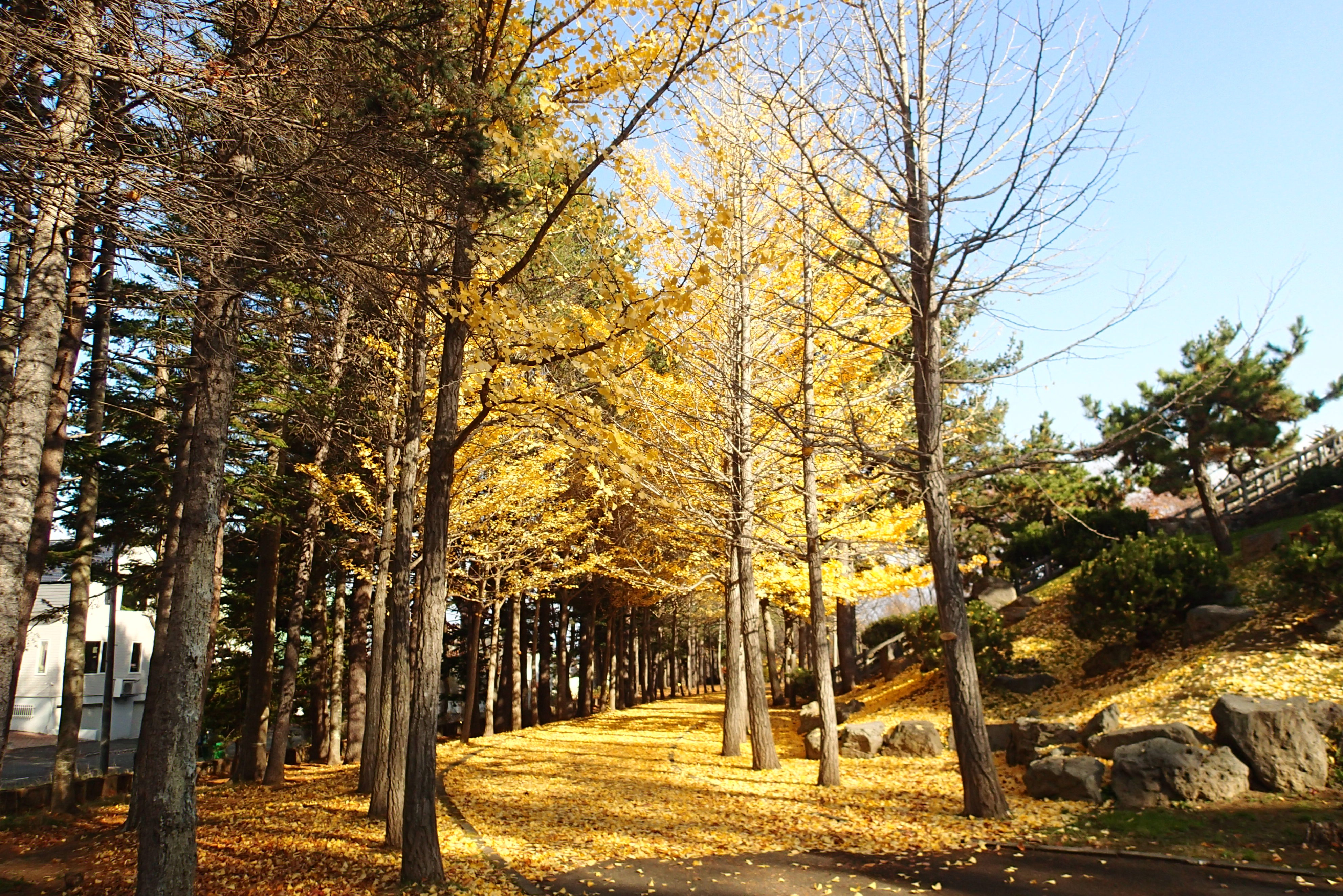 イチョウ並木の落葉も進みました。まだ葉を付けている木もありますが8割ほど落葉したと思われます。