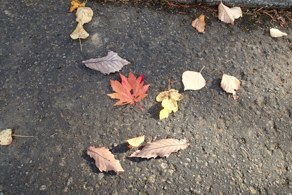 園内全体で落葉が進み、葉を付けていない木も目立ち始めました。園路には様々な形をした落ち葉が広がり、その形を見ているだけでも晩秋を楽しめます。