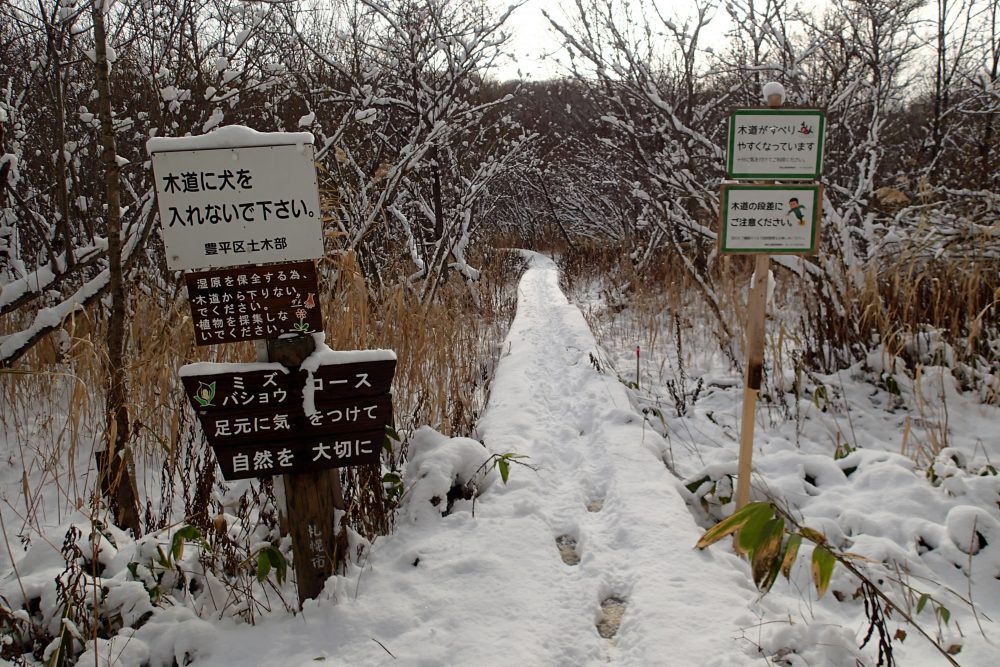 木道も10cm程の積雪となっていて、まだ木道の幅は見えていますがすれ違う際には十分にお気をつけください。