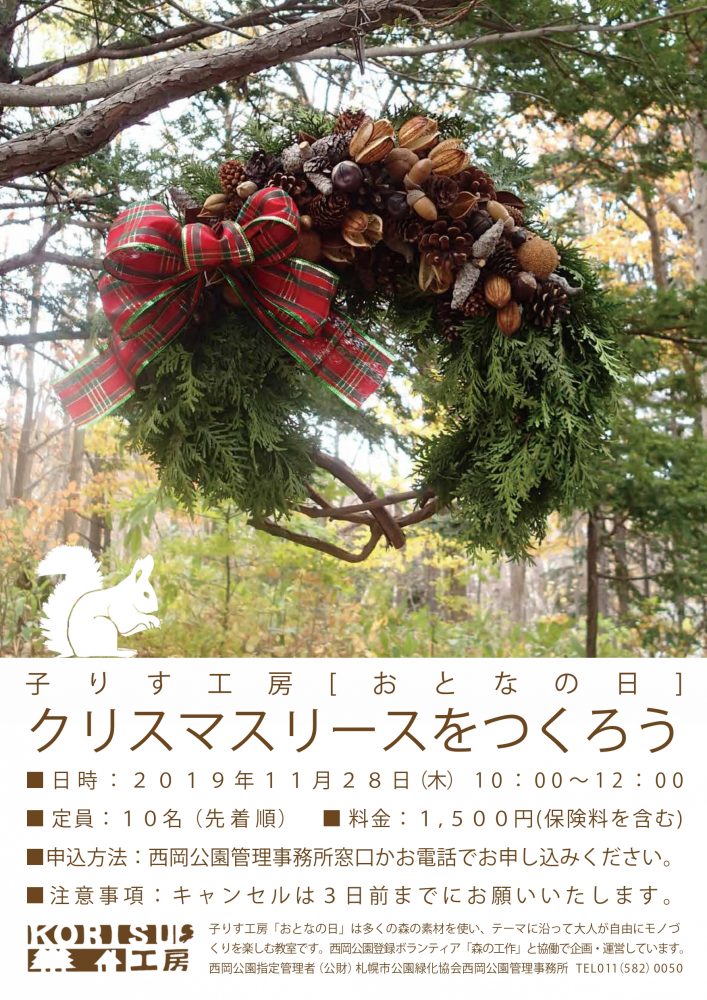 11月28日(木曜日)に森の工作の子りす工房・おとなの日が開催されます♪