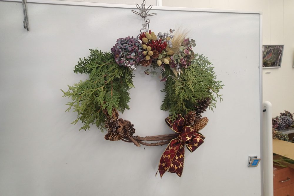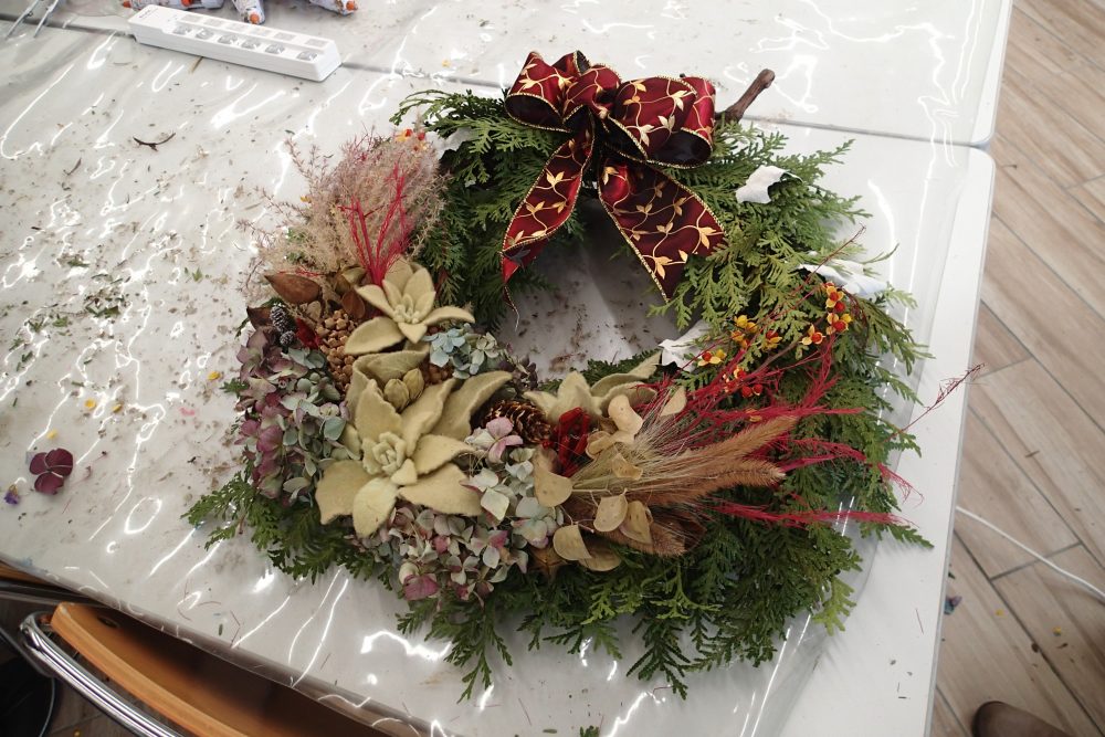 今回はリース作りに慣れていた方や、過去の子りす工房にご参加いただいた方もいらっしゃいました。その分作るペースが早く、ゴージャスなクリスマスリースが仕上がったのではないでしょうか?