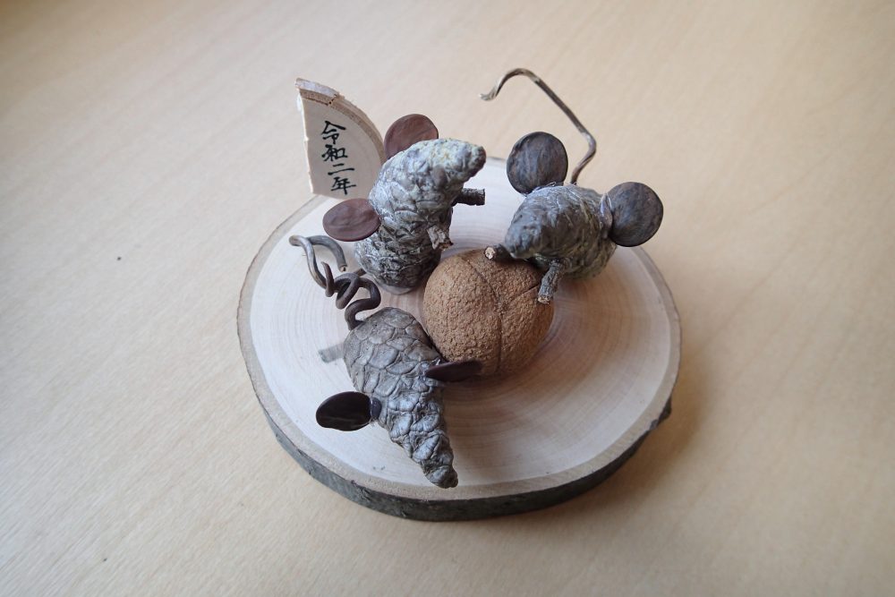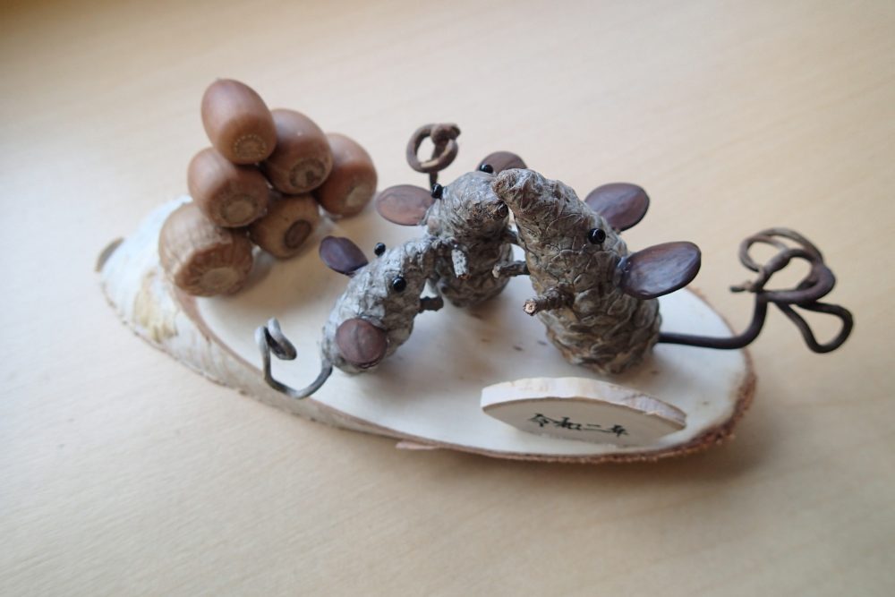 そして来年の干支ねずみの置物もご用意しています。ねずみの目や耳がそれぞれ違うため、1つ1つの表情が違います。ぜひお気に入りのねずみをお家に連れて帰って一緒にお正月をお迎えください。