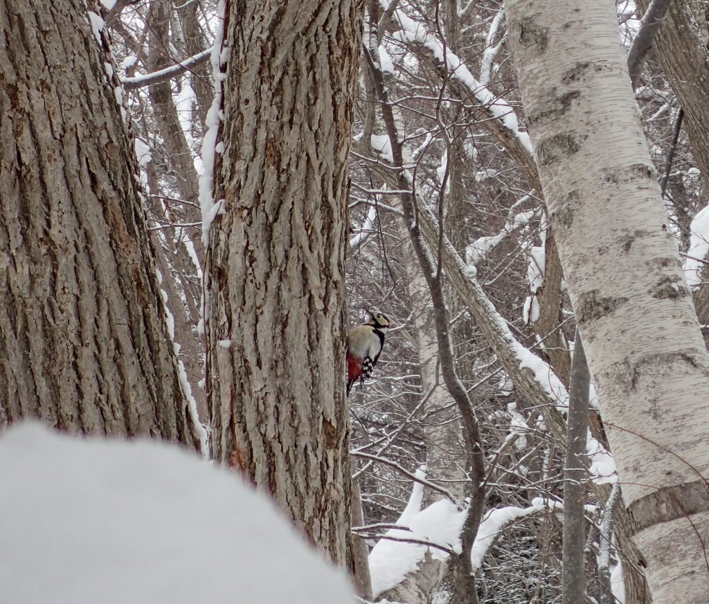 シジュウカラ、ゴジュウカラ、ハシブトガラ、コゲラやキクイタダキも餌さがしに忙しそうです。