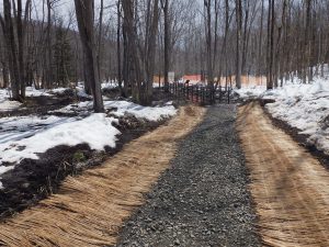 新しい園路の路肩には養生のため敷き藁をしいております。