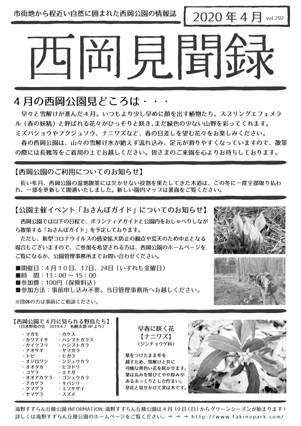 今月は、木道改修工事や「おさんぽガイド」についてのお知らせ、裏面には最新のマップを掲載しております。