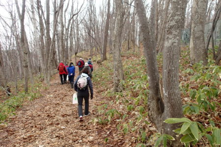 午前中の雨はやみましたが、寒い中、みなさん厚着をして出発です。