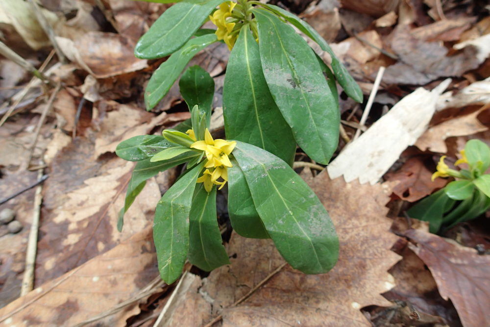3月には雪の中から緑の葉が見え始め、ようやく小さな黄色の花が咲き始めました。