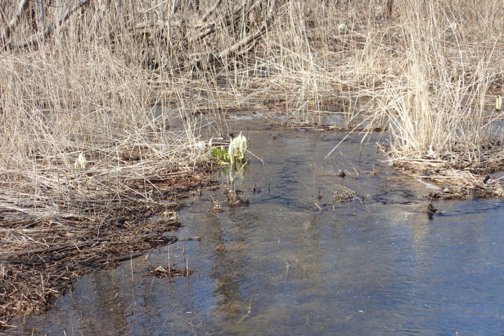 湿原の方ではミズバショウの白い苞(ほう)が見え始めています。