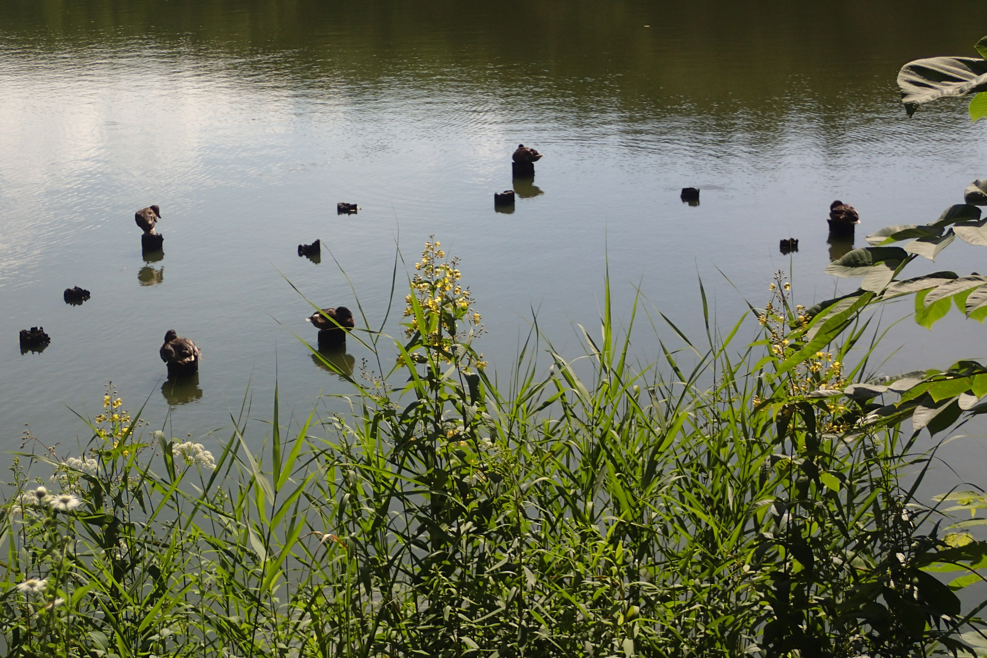 写真は、黄色いクサレダマとマガモたち。