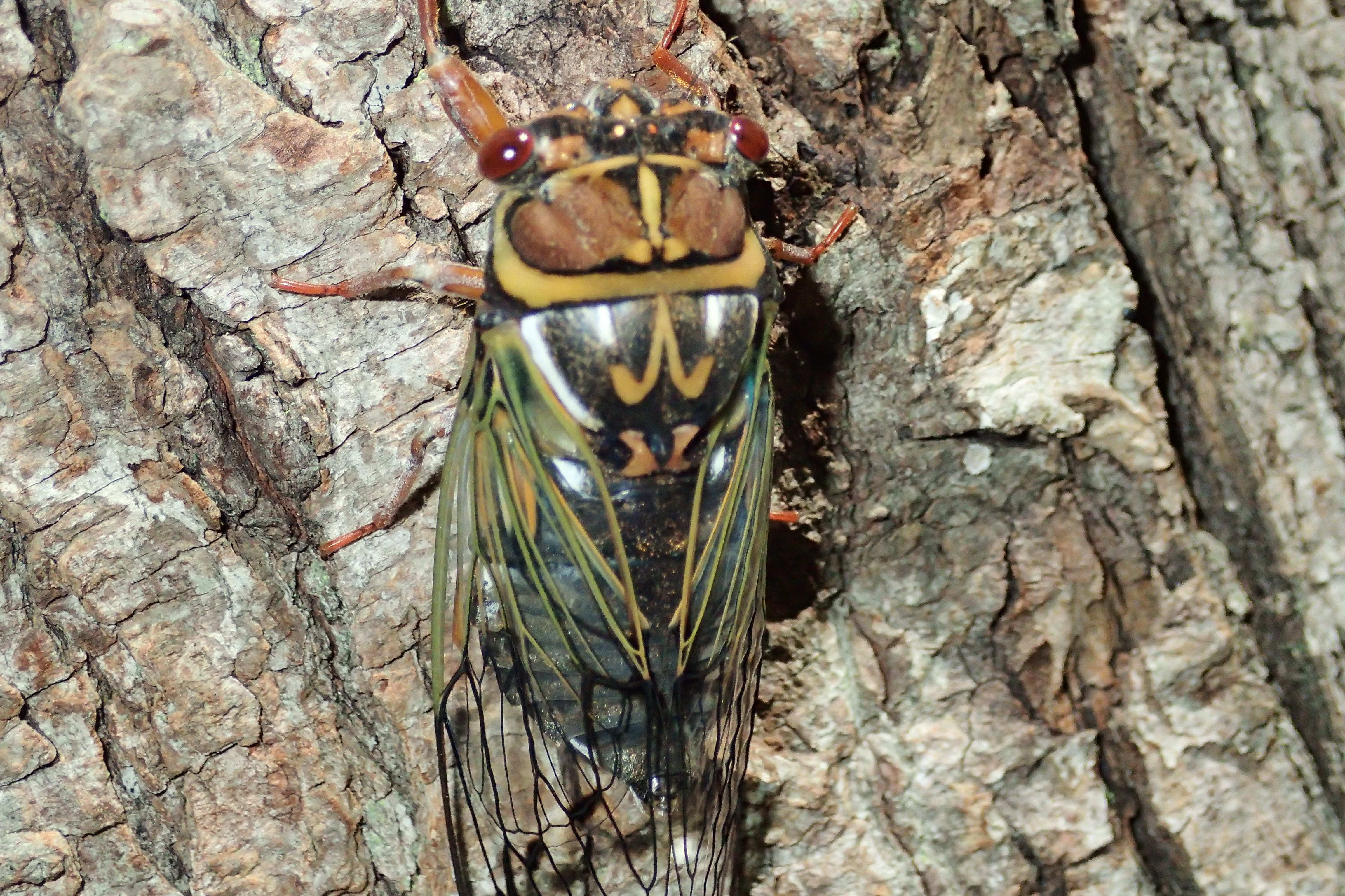 園内で鳴いているセミたちの姿も見られました。エゾゼミです。