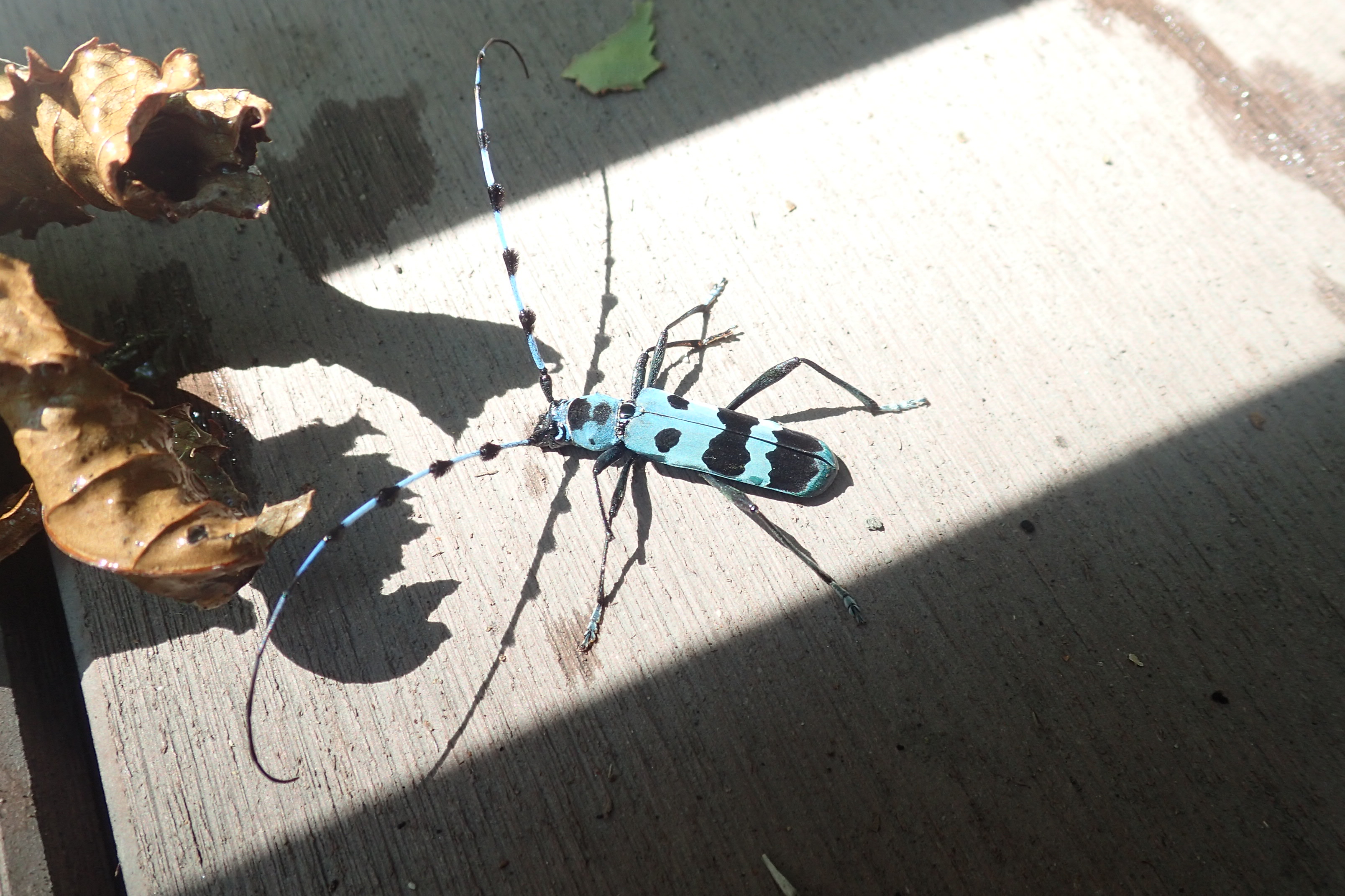 ルリボシカミキリです。触角が長いですね。美しいので、見つけると嬉しくなるカミキリムシです。