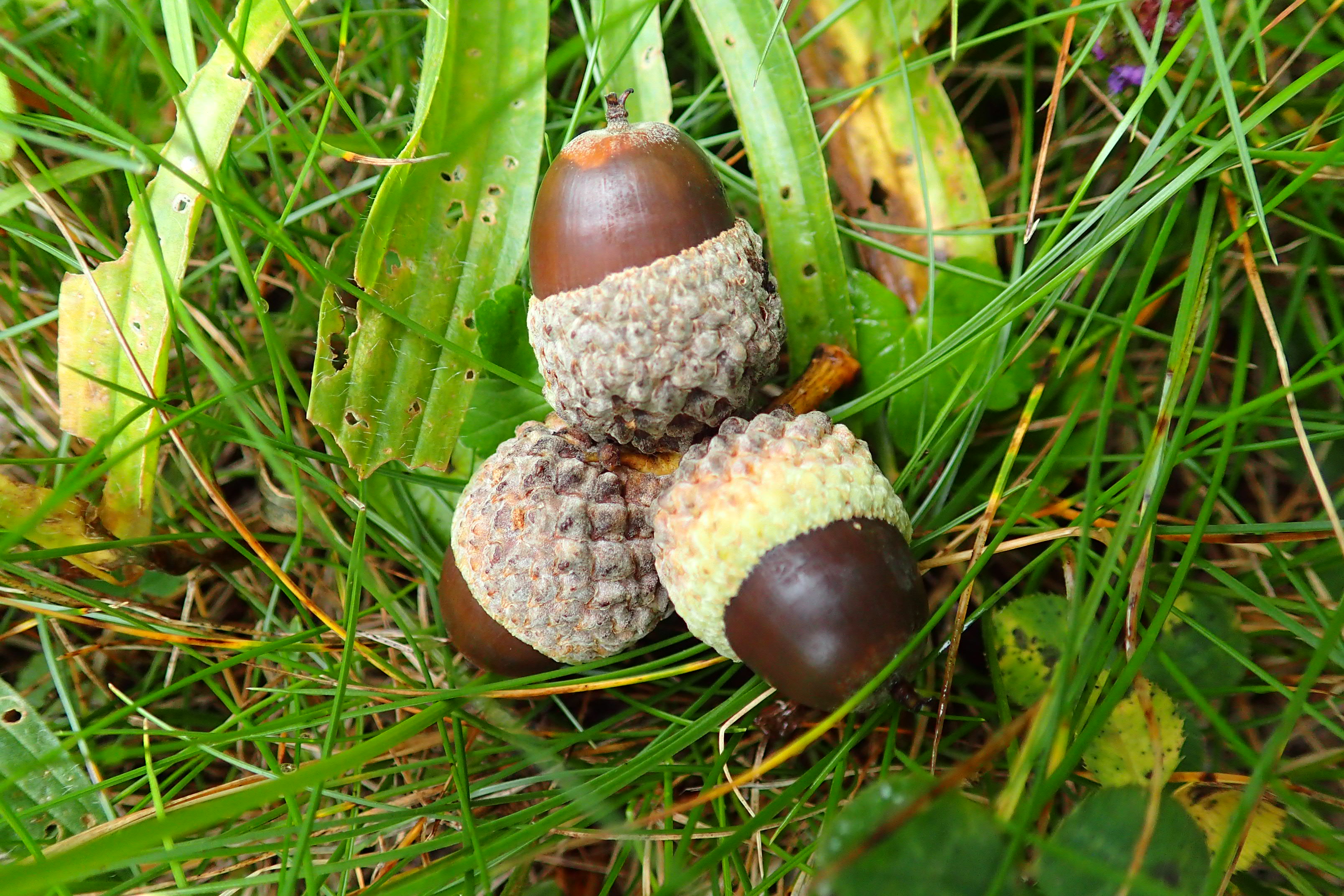 ミズナラ。たわわになっています。落ちているものの中には、もう、芽が出ているものがありました。