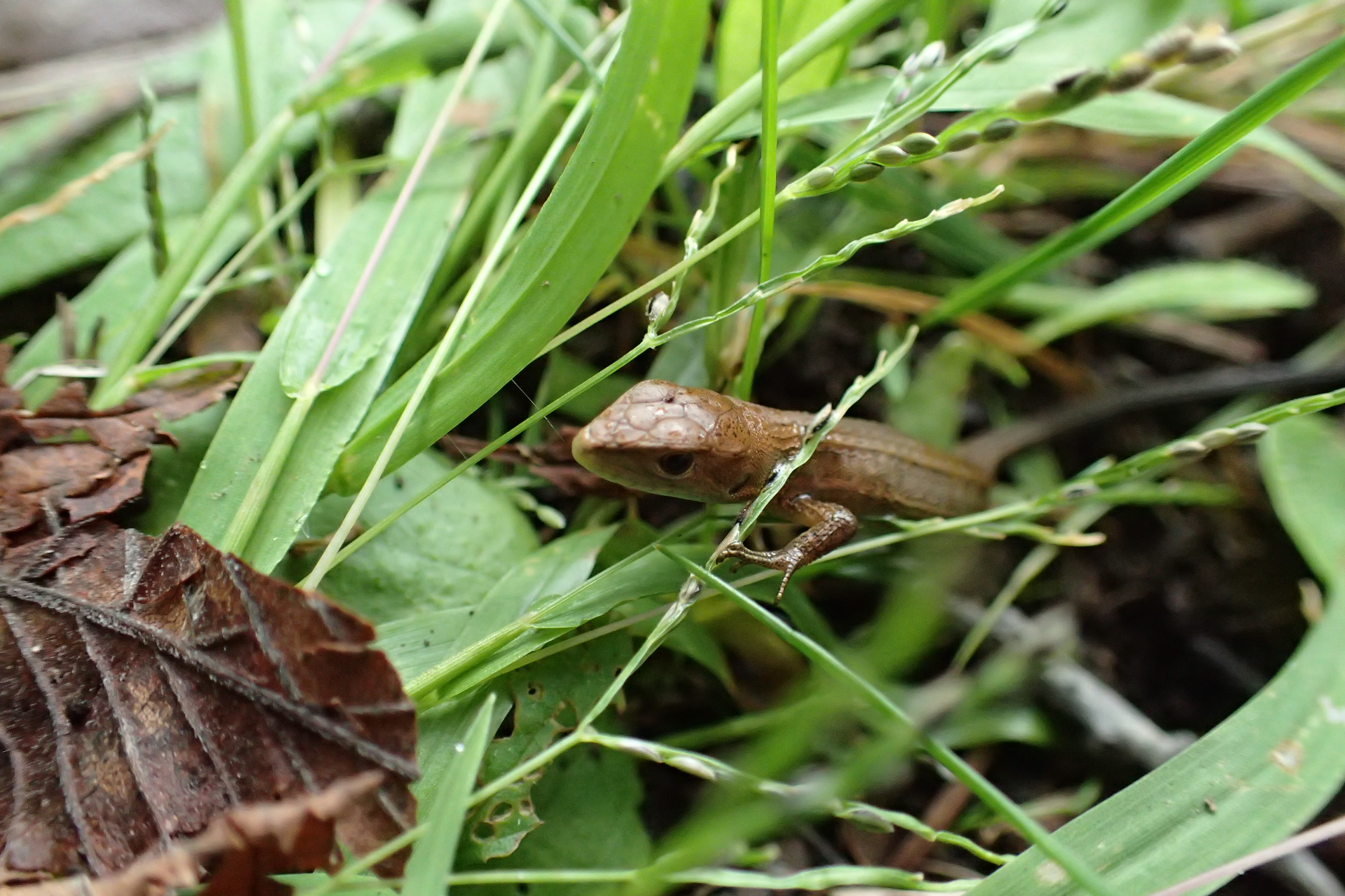 ニホンカナヘビ。5センチくらいしかない小さい個体でした。今年生まれたのかな。可愛いですね。