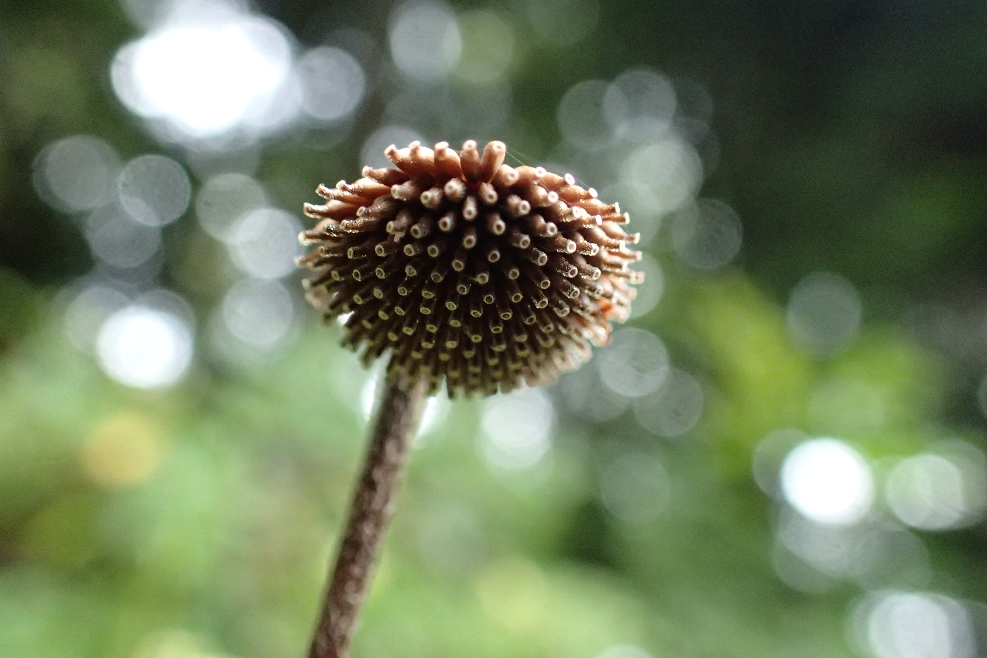 水溜りのある雨でぬれた園内を歩くと、秋の花たちや、ドングリ、マツボックリ、キノコなどいろんなものを見ることができました。植物の実の観察も楽しかったですね。