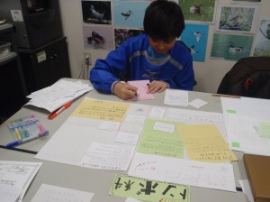 昨日はヤンマ団の活動日で、来月に迫った報告展の展示を作りました。 今年は一人一人が、大きな紙に展示を作ります。 ものすごい集中力で完成させた子、悩みながらなかなか進まなかった子、 おしゃべりに夢中になっていた子・・・・様々でしたが、なんとかみんな 目標としていたところまでは、終えることができました。