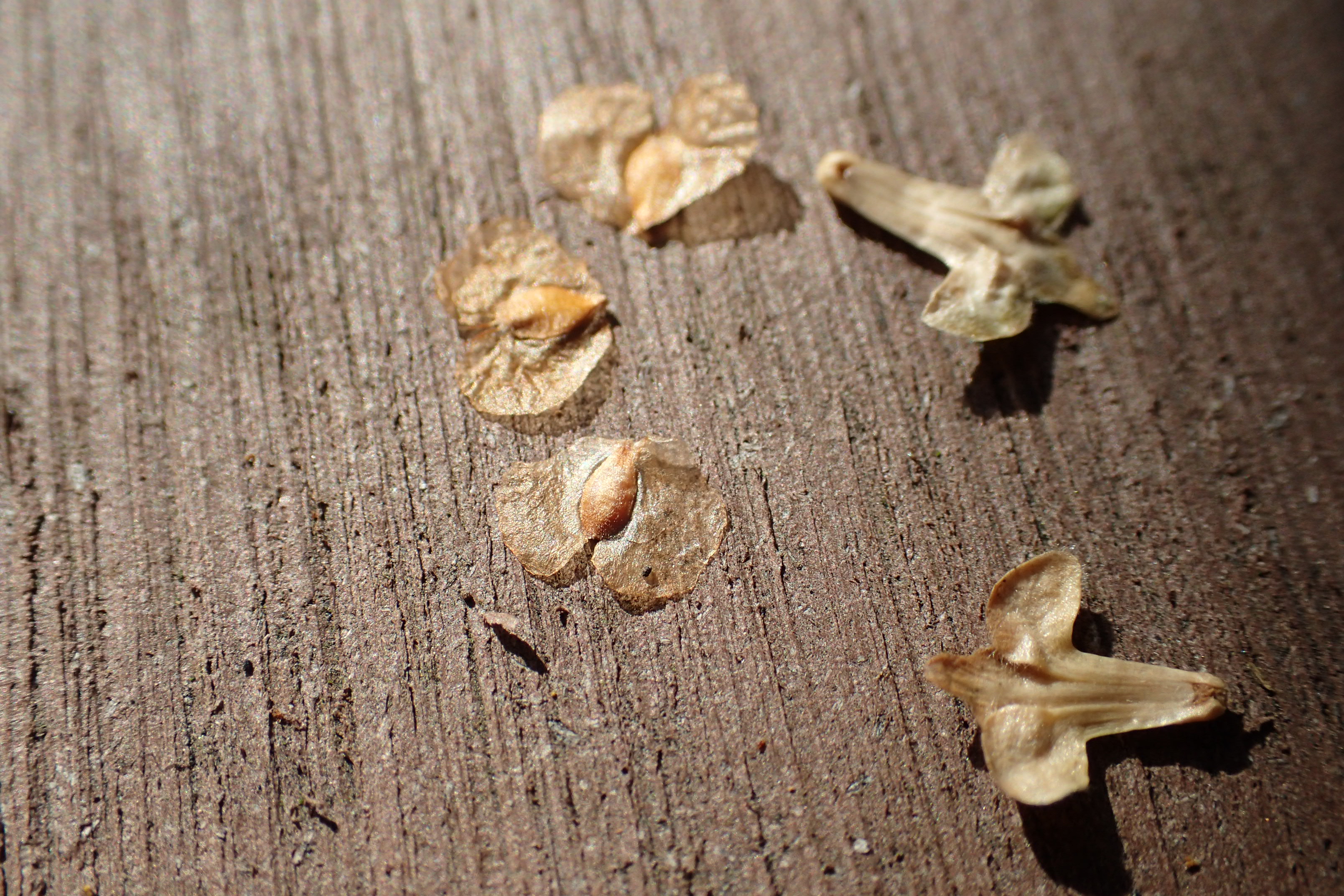 種には両側にうすい翼がついていて、風に乗ってひらひら飛びます。