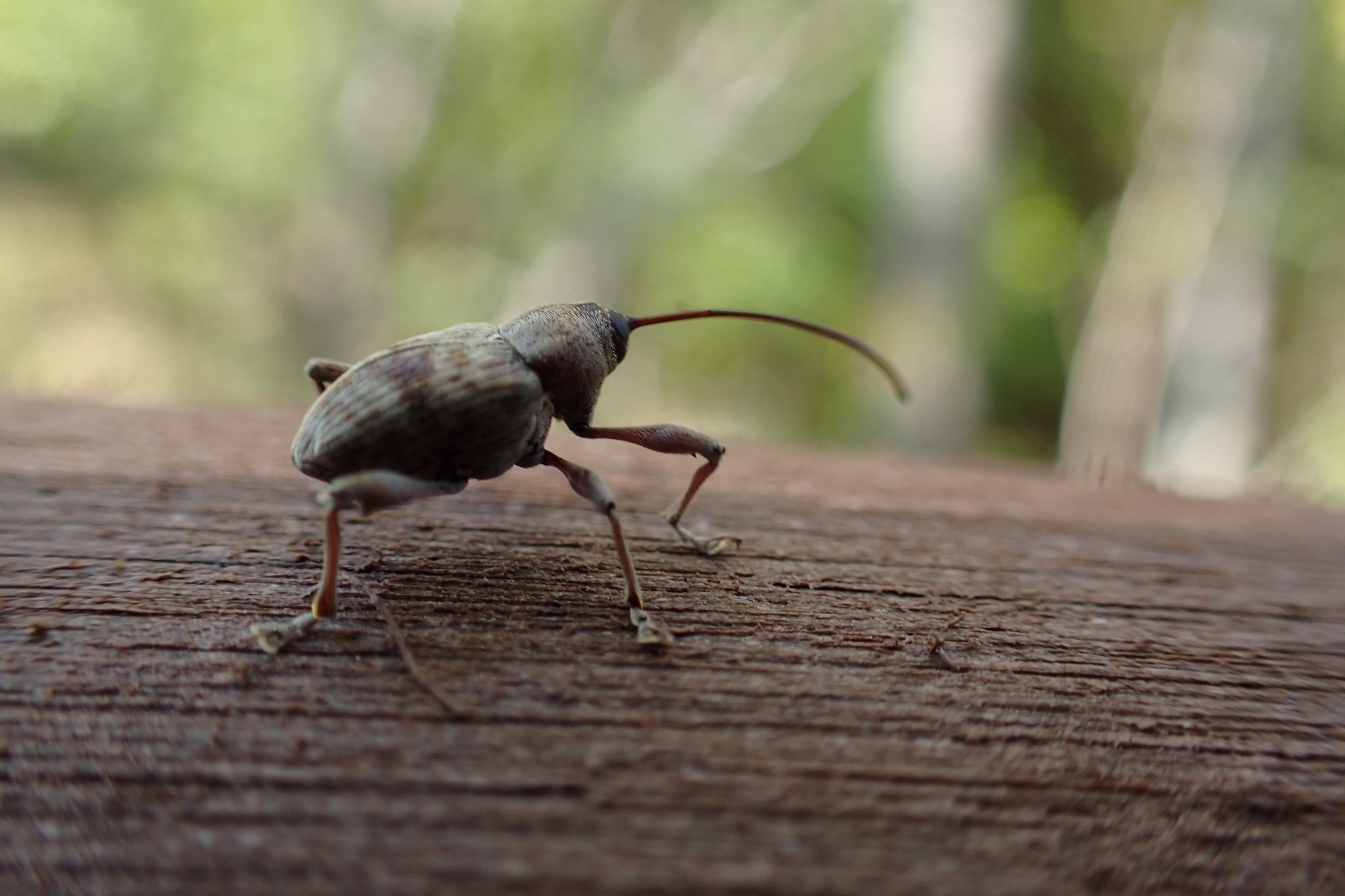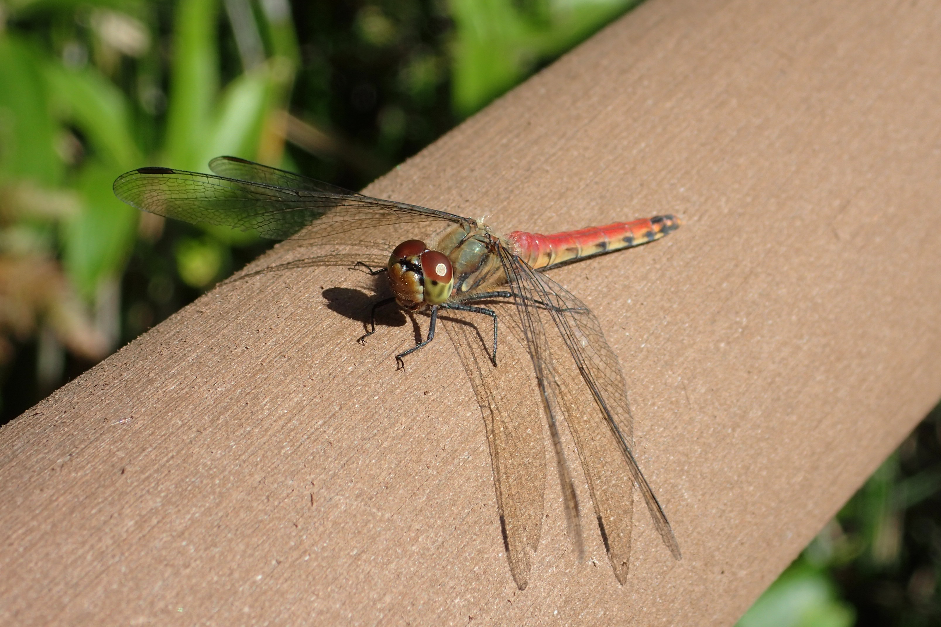 木道の手すりでは小さな虫たちがお日様を浴びています。