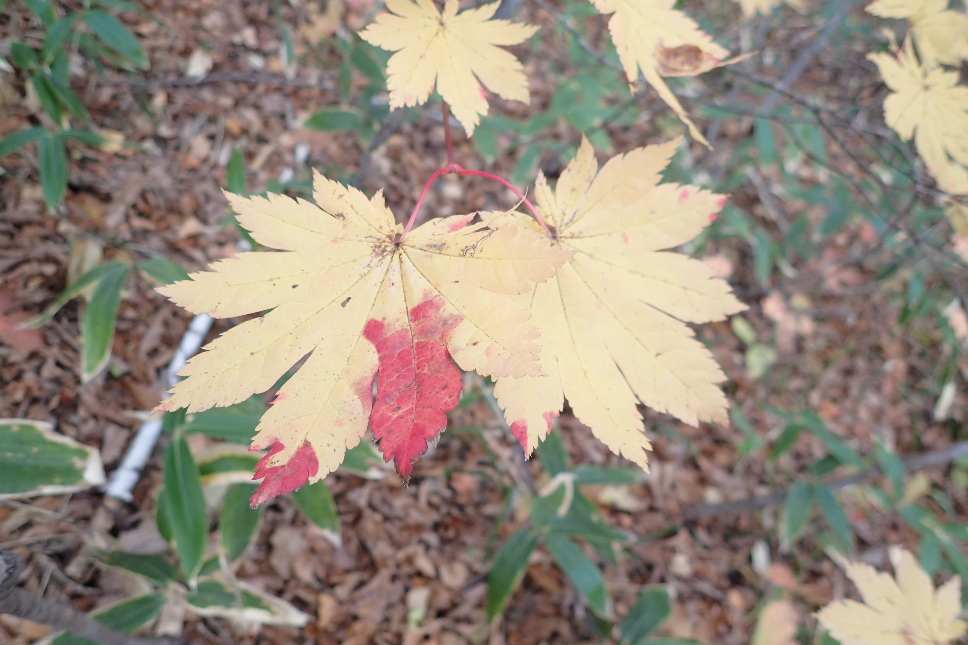 ハウチワカエデの紅葉。黄色やオレンジ色、赤。いろいろな色がありますね。