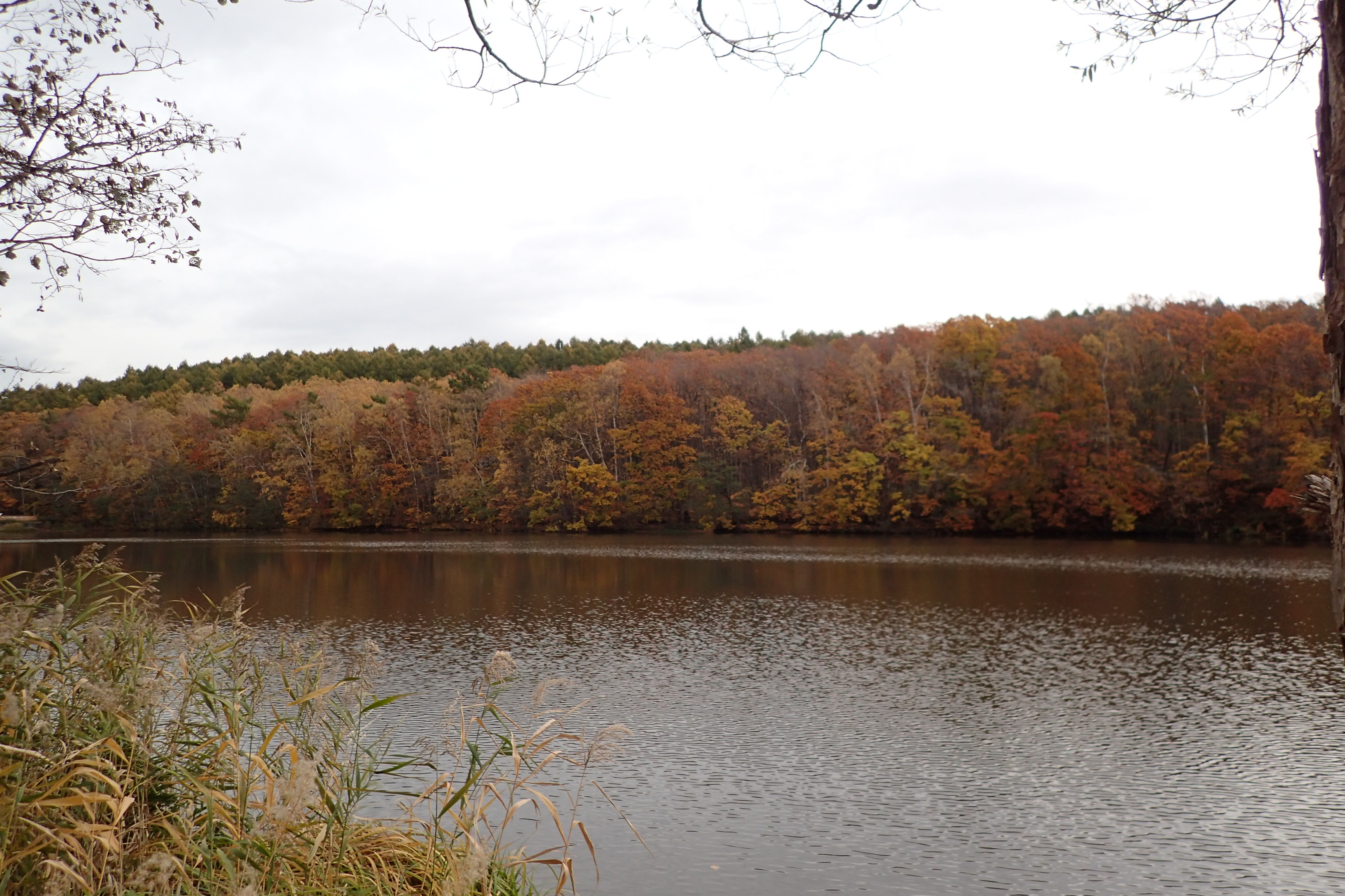 紅葉は黄色、オレンジ色が中心でした。エゾ松の葉や枝の間から小さい鳴き声がするのでよく見るとキクイタダキがいました。