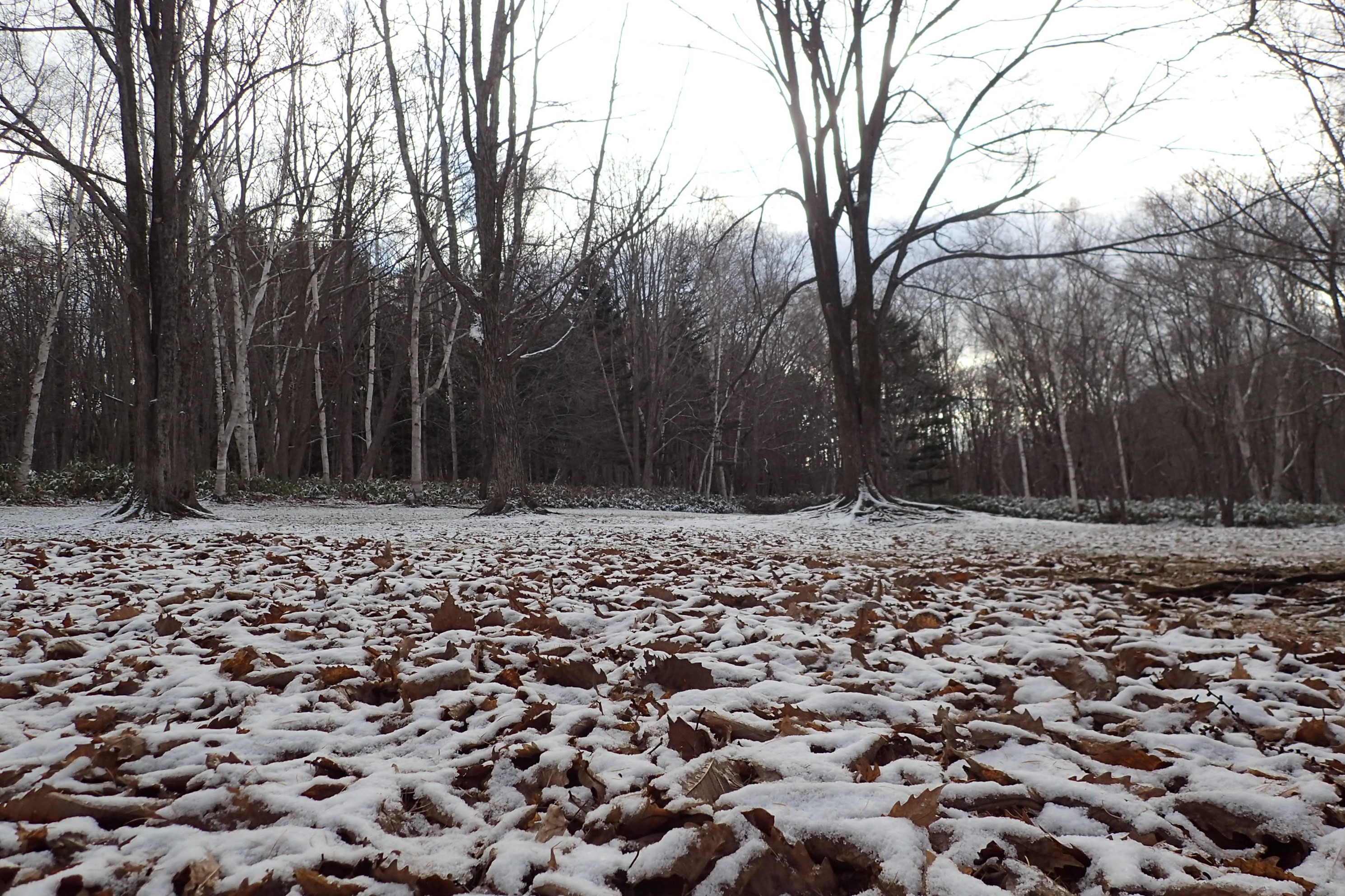 今日の西岡公園は雪がうっすら積もりました。時おり雪もちらちら降っています。