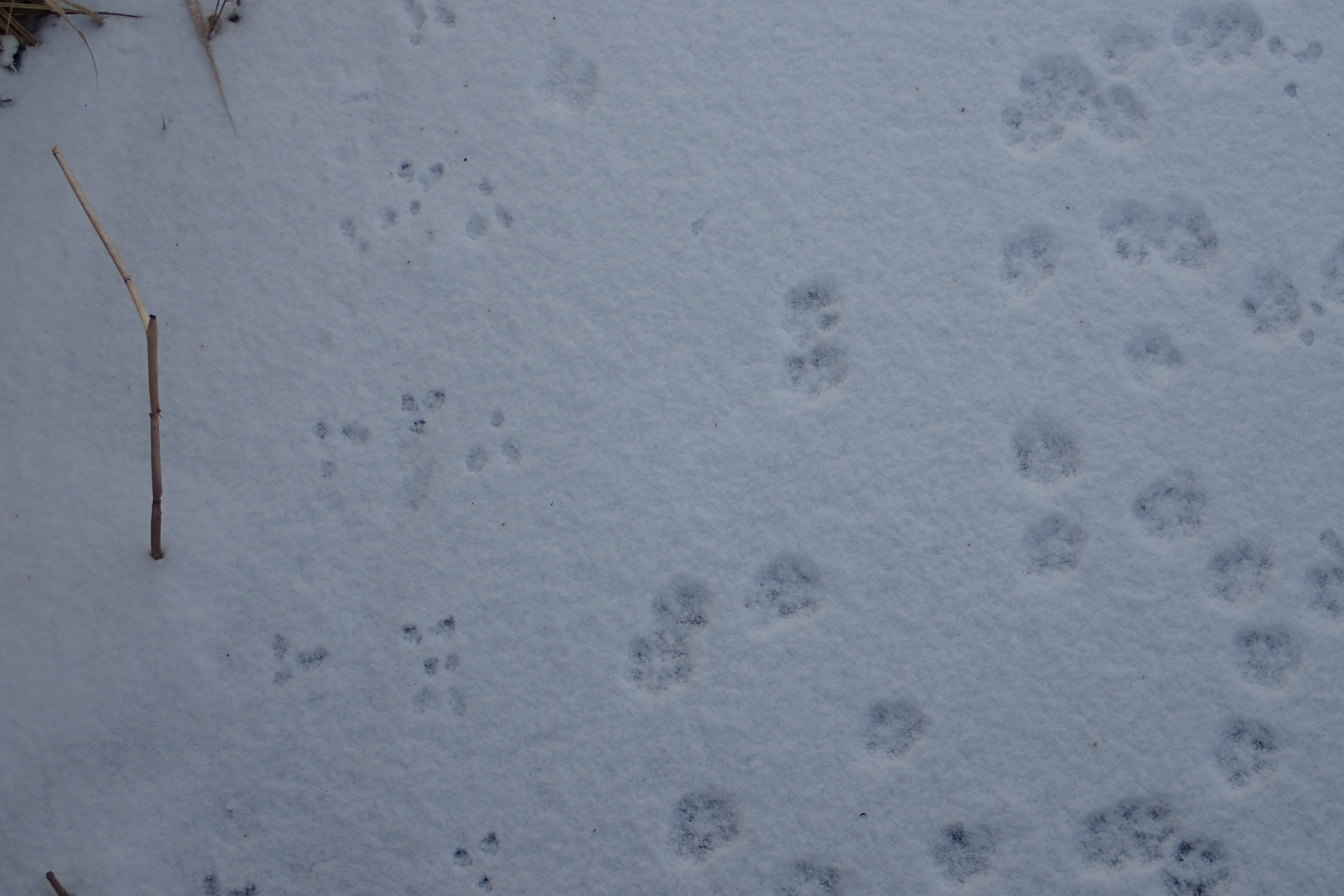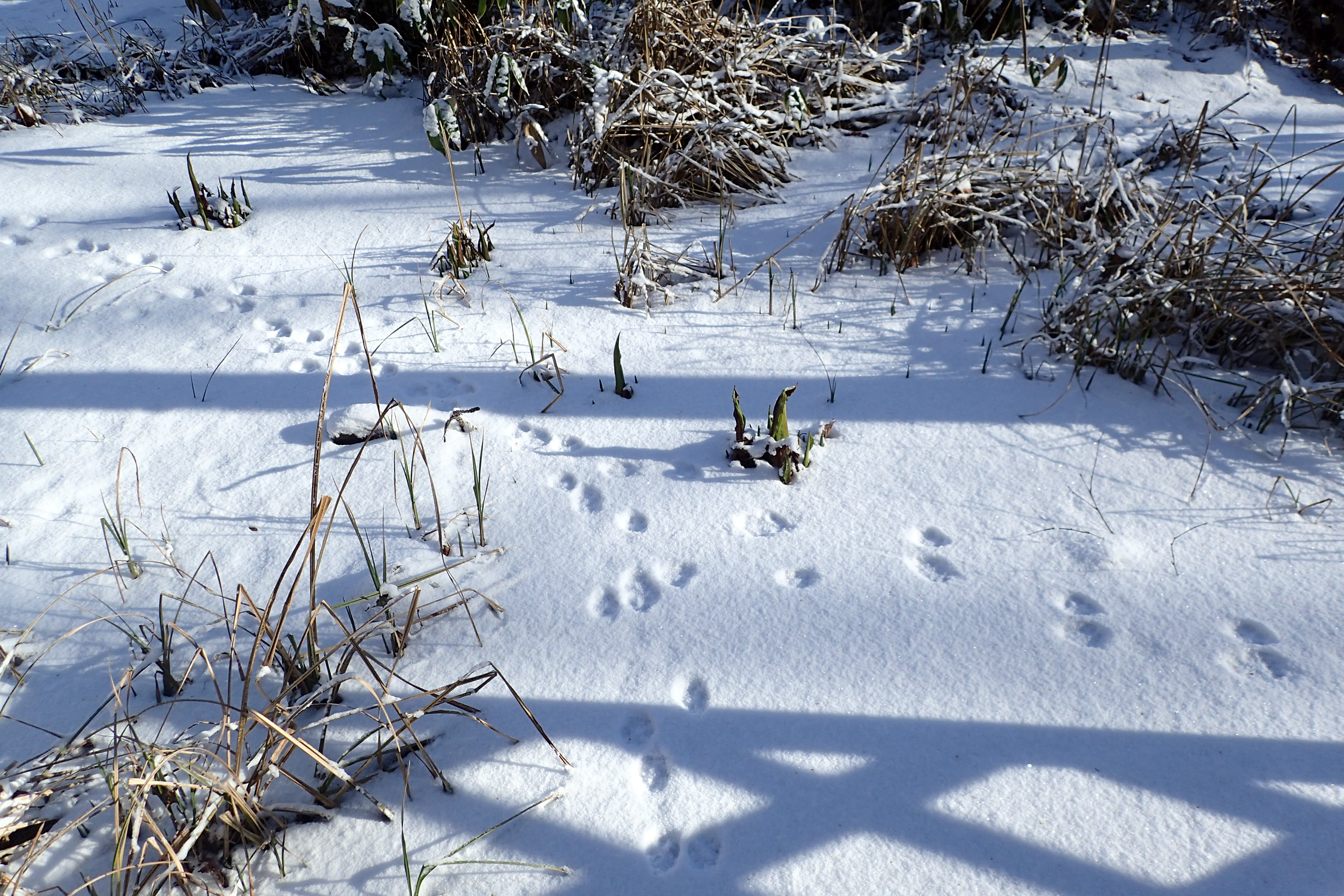 雪には動物たちが歩いた跡がのこされています。みんなどこへ行ったのでしょうか。