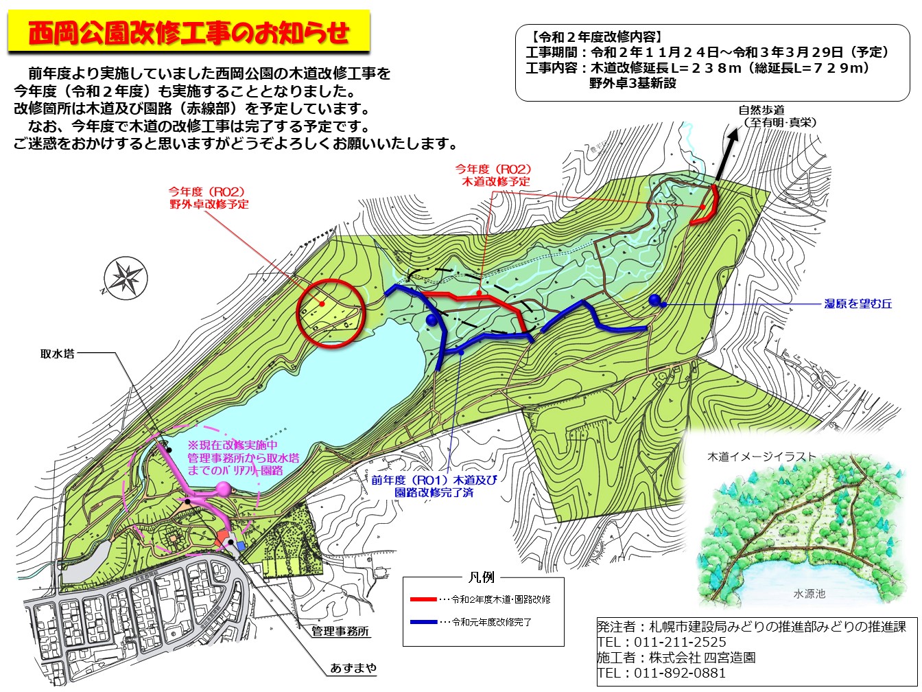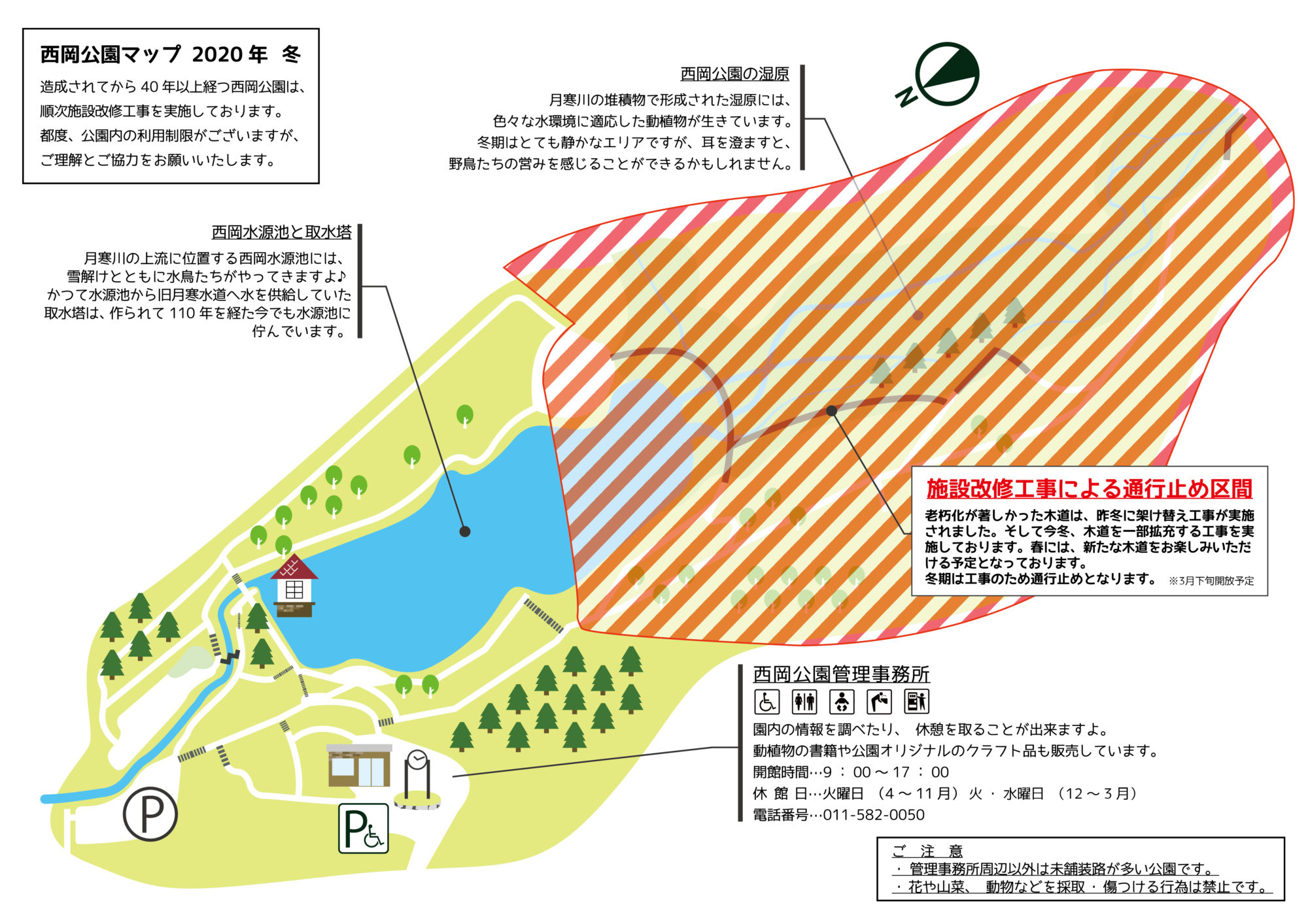 尚、木道の改修工事のため、公園南側は引き続きご利用を制限させていただいております。