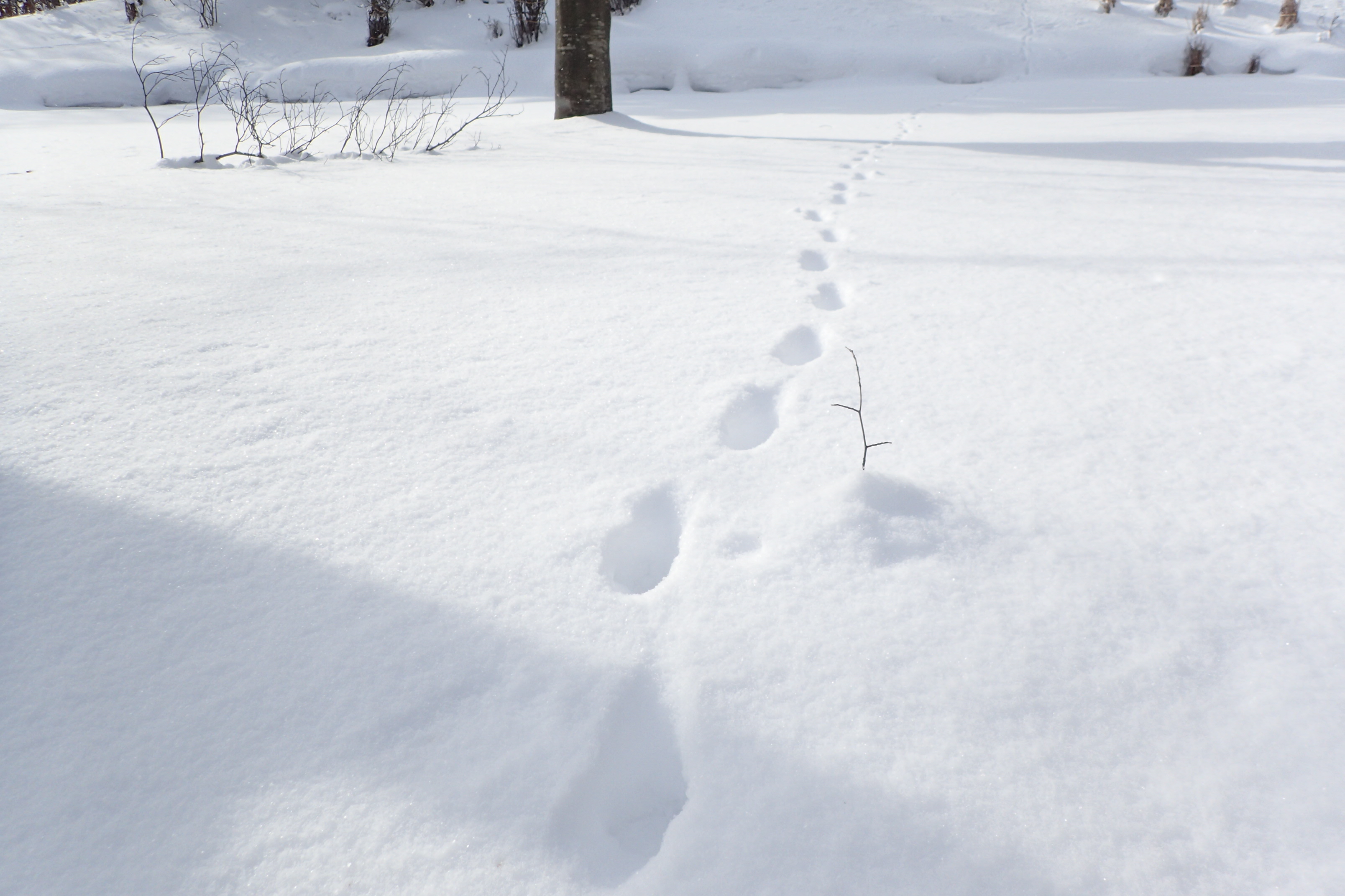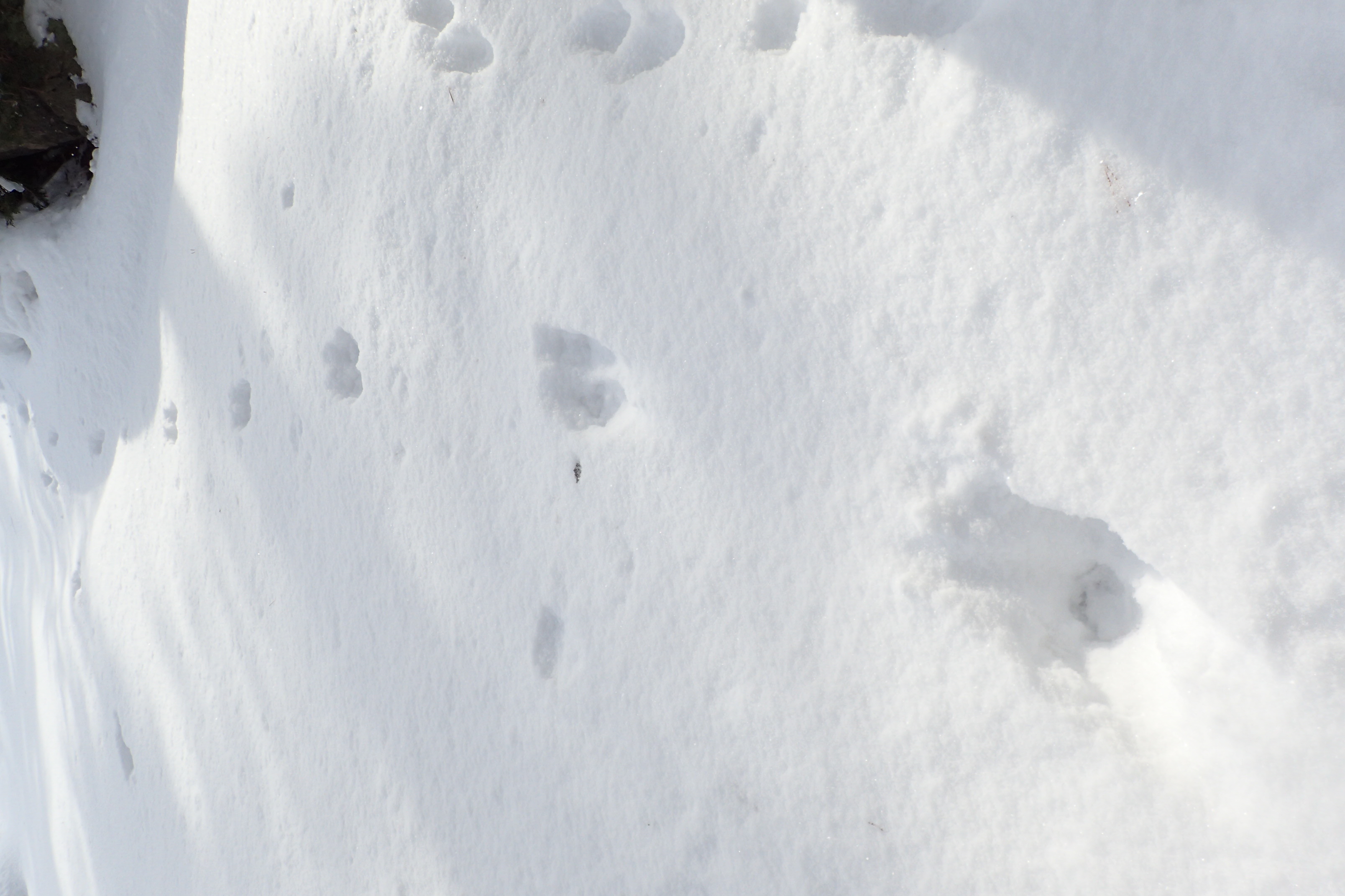 キタキツネの足跡。これもあちらこちらで見かけました。