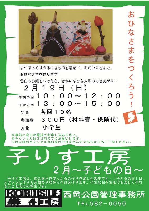 子りす工房~こどもの日、2月はお雛様を作ります。
