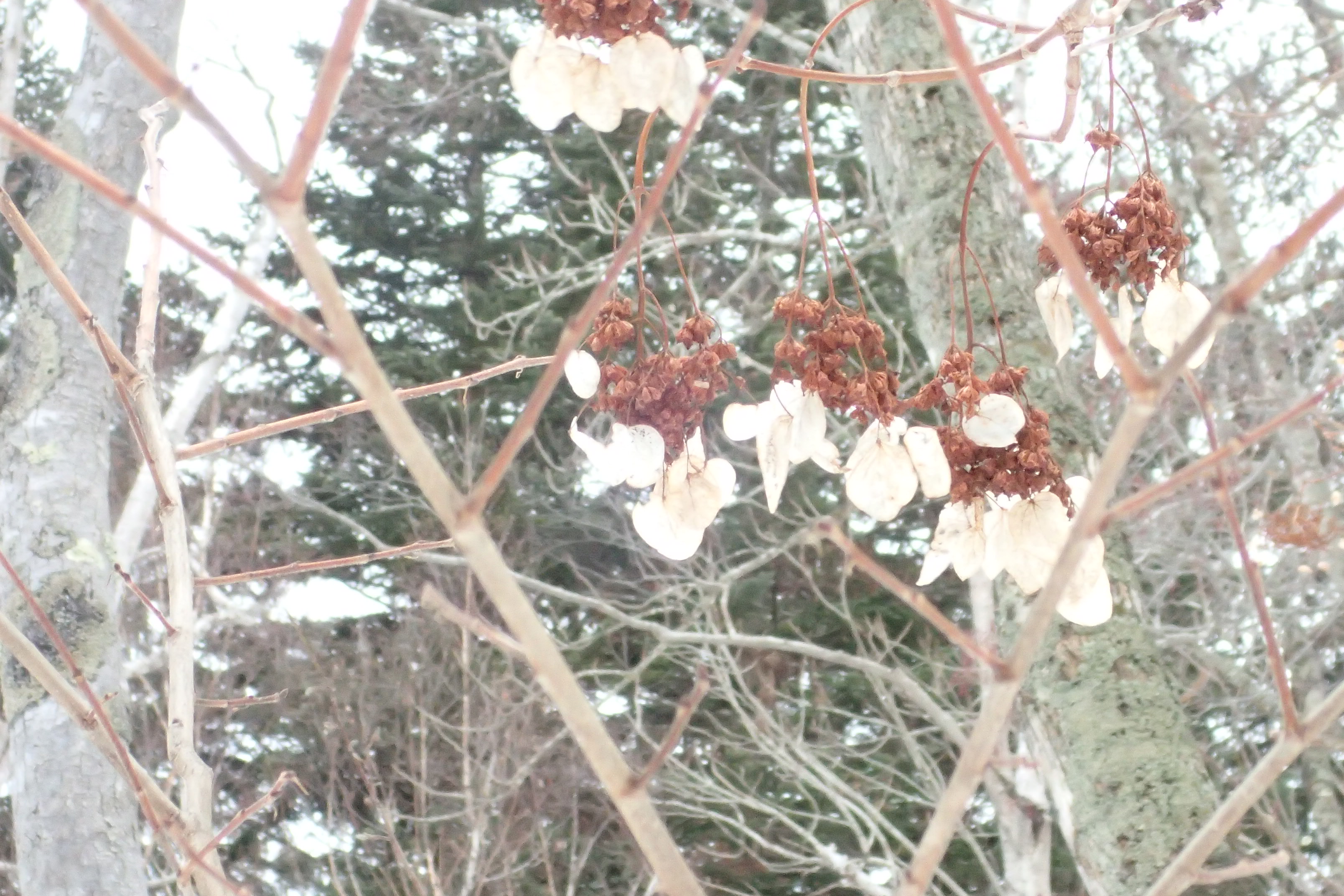 夏の間は木の葉の陰になって見えにくかったイワガラミの花殻がよく見えます。