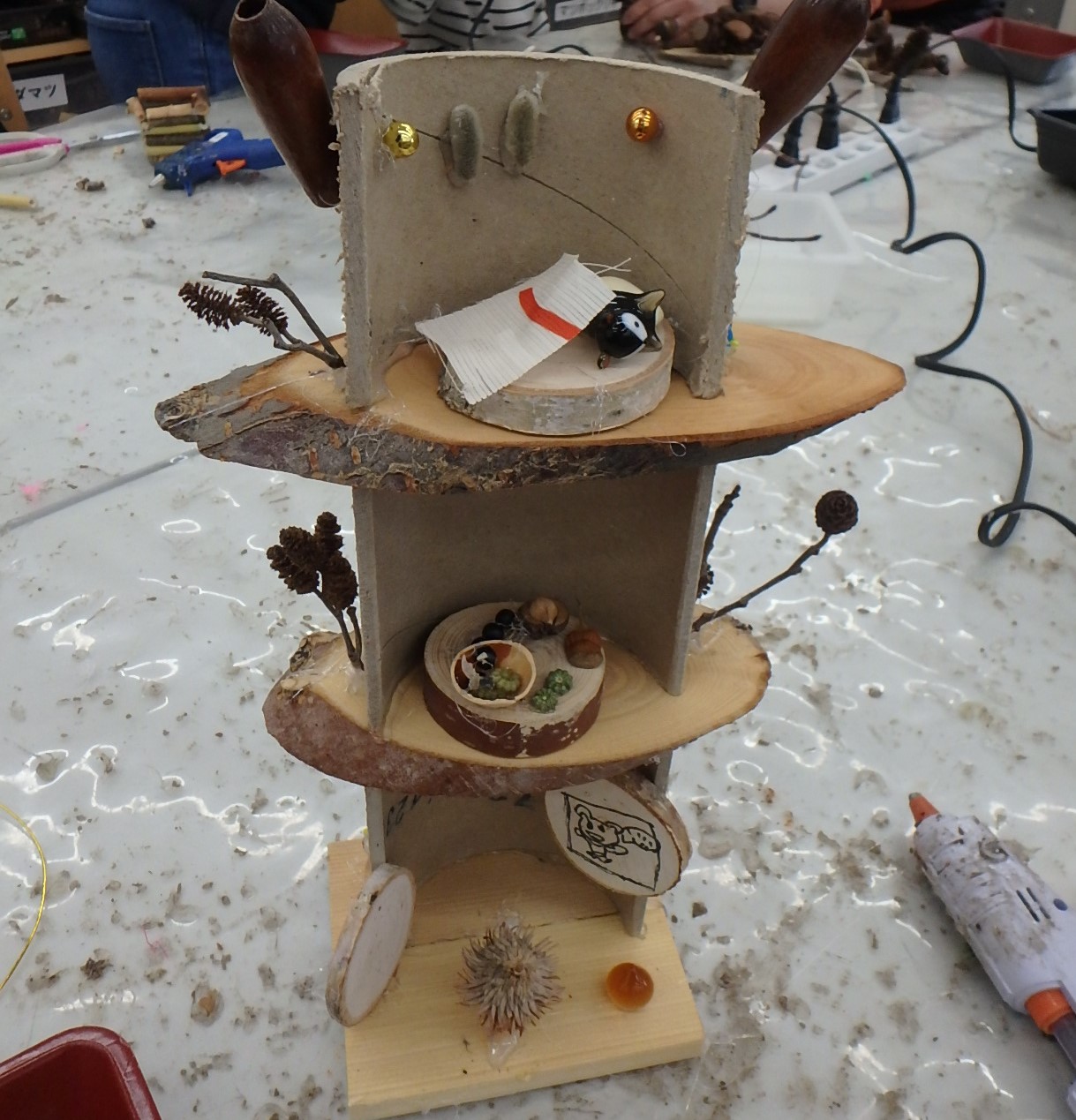 マツボックリを使ってわんちゃんを作ったり、クルミでカメを作ったり。