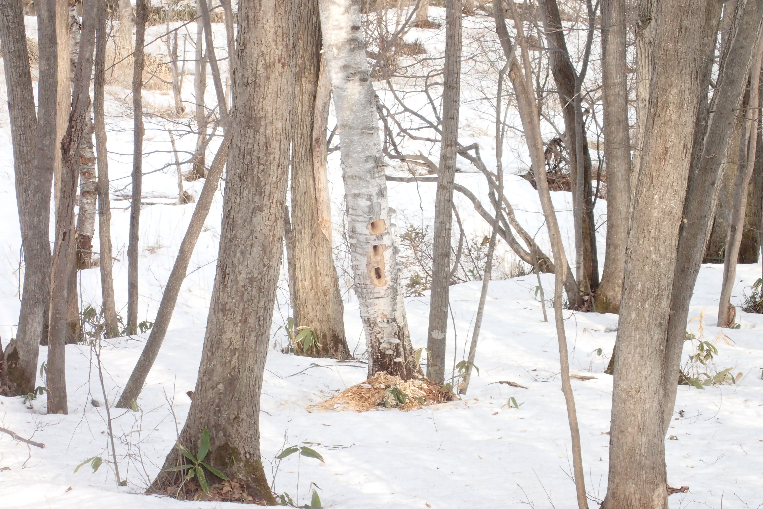 開ける穴も大きいですね。遠くでクマゲラの鳴き声が聞こえていました。